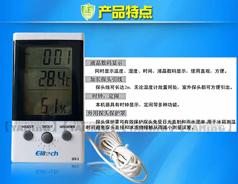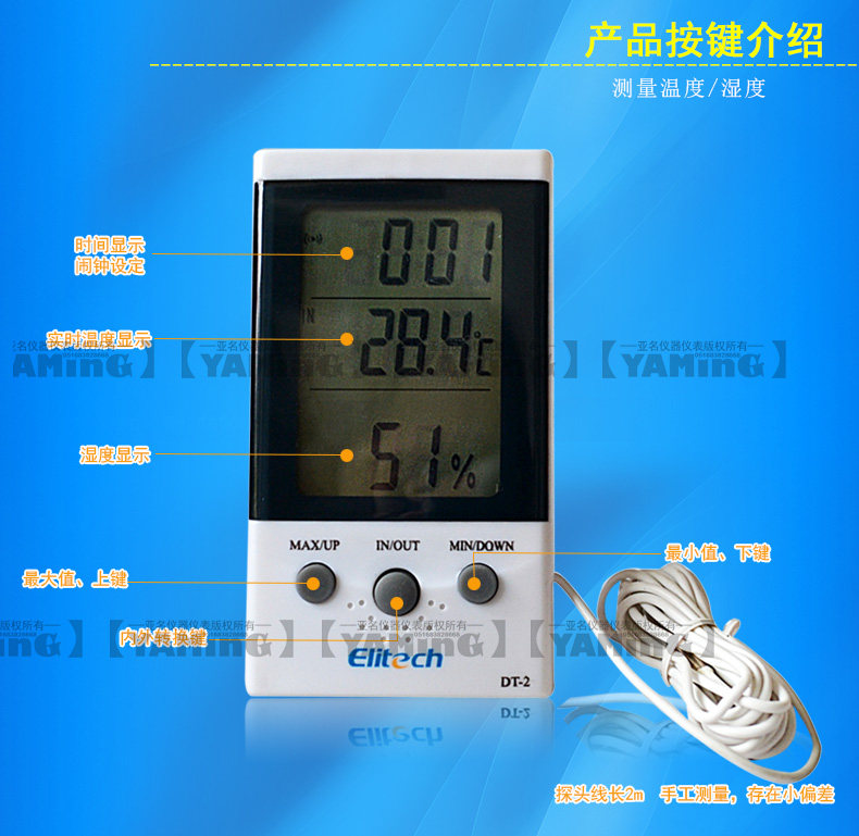 Создание DT-2 Обнаружение внутреннего цифрового цифрового дисплея Электронная температура и измеритель влажности Высокий датчик