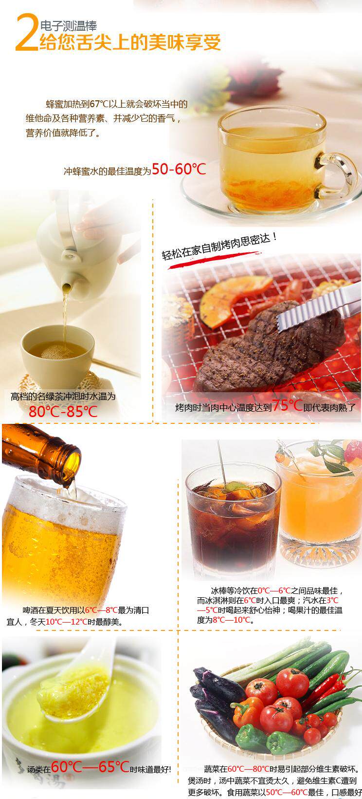 ★ Температура пищи тесно связана с его вкусом и питанием. Лучшая температура различных продуктов - это: