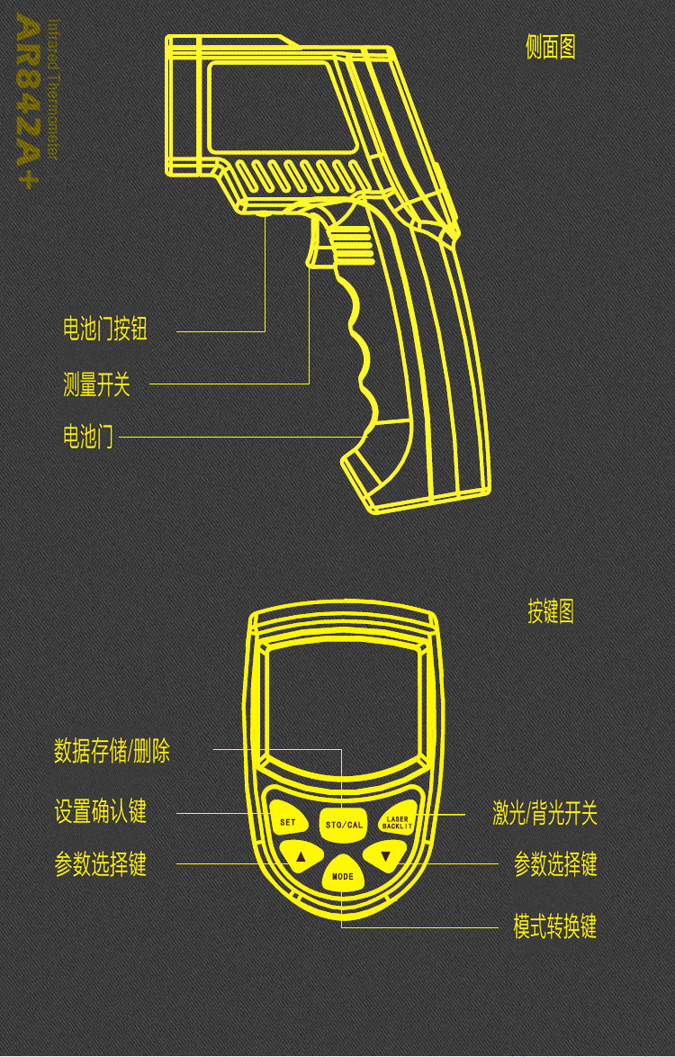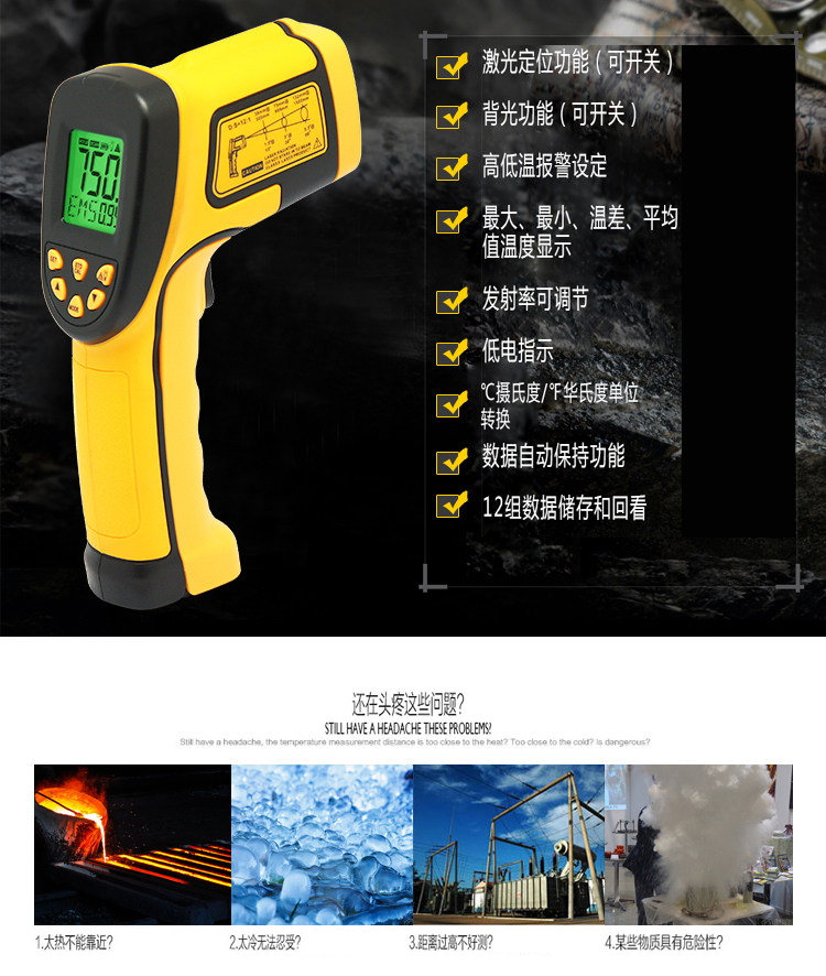 Инфракрасный термостат HIMA AS842A/AS852B Инфракрасный термометр Инспекции по высокой точности домохозяйства с теплым оружием