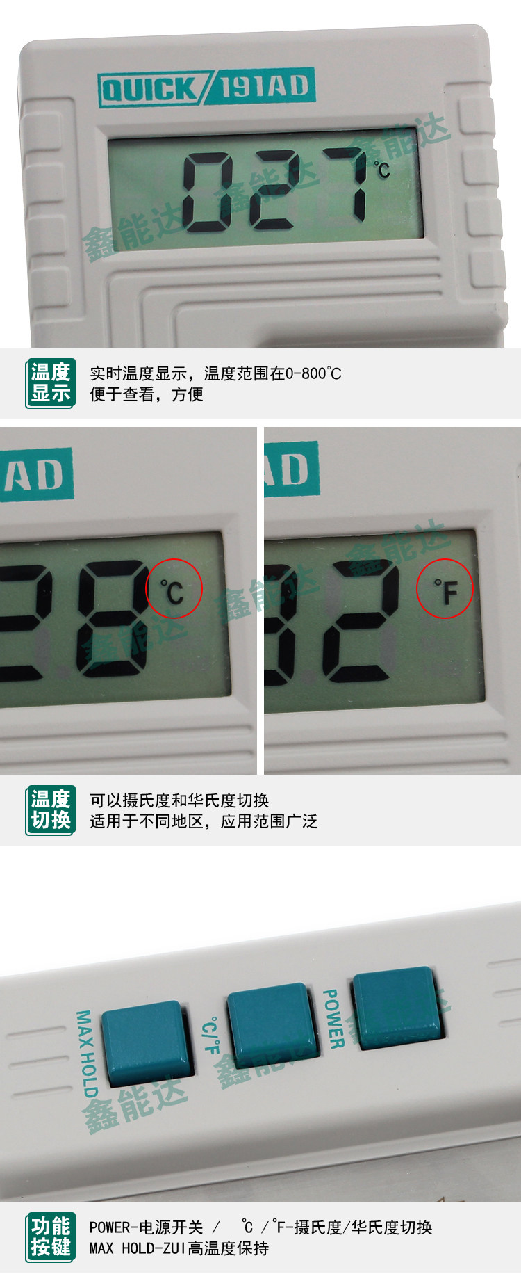 Quick Gram 191AD -тестер 800 ° C, прибор датчика головки припая
