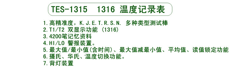 TES-1315/1316 K.J.E.T.R.S.N.Таблица записей температуры