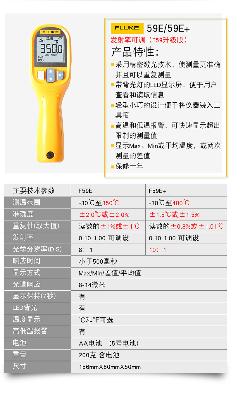 Термометр Fluke F59E+Инфракрасный термометр F59E Термометр термометр