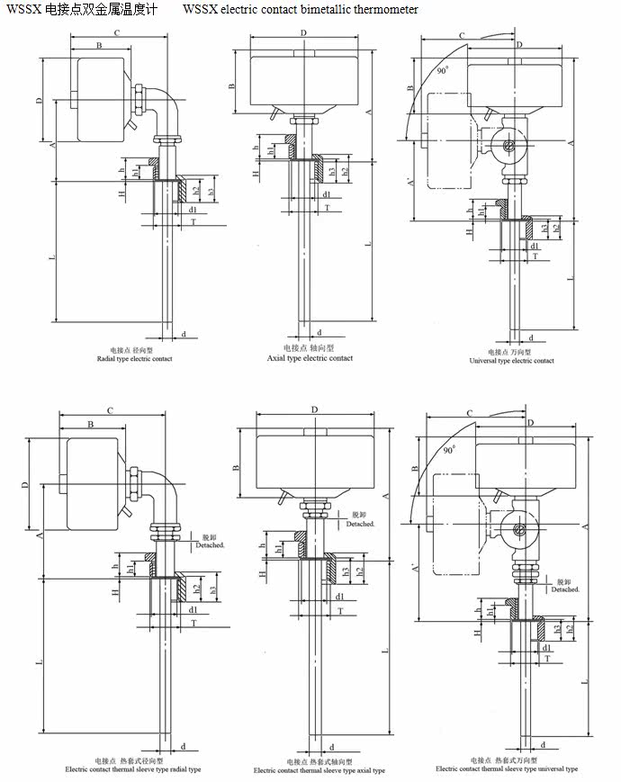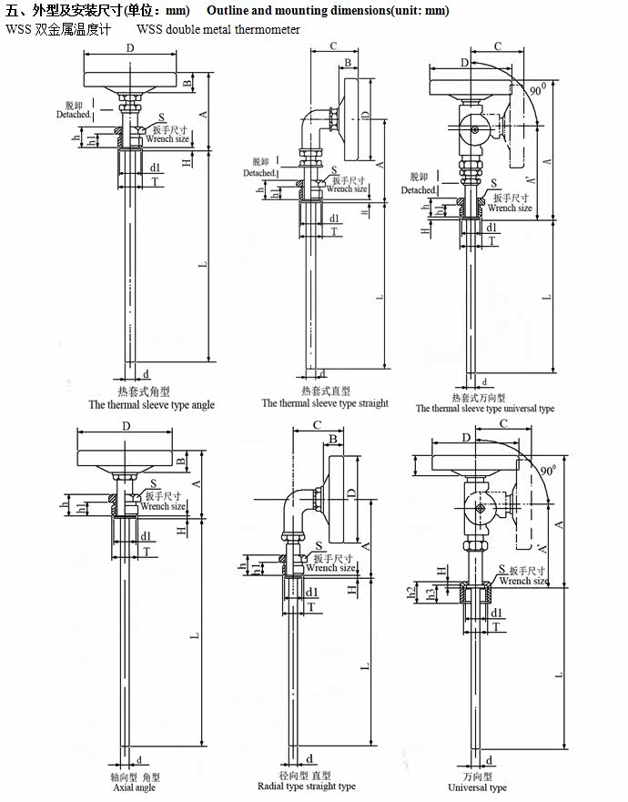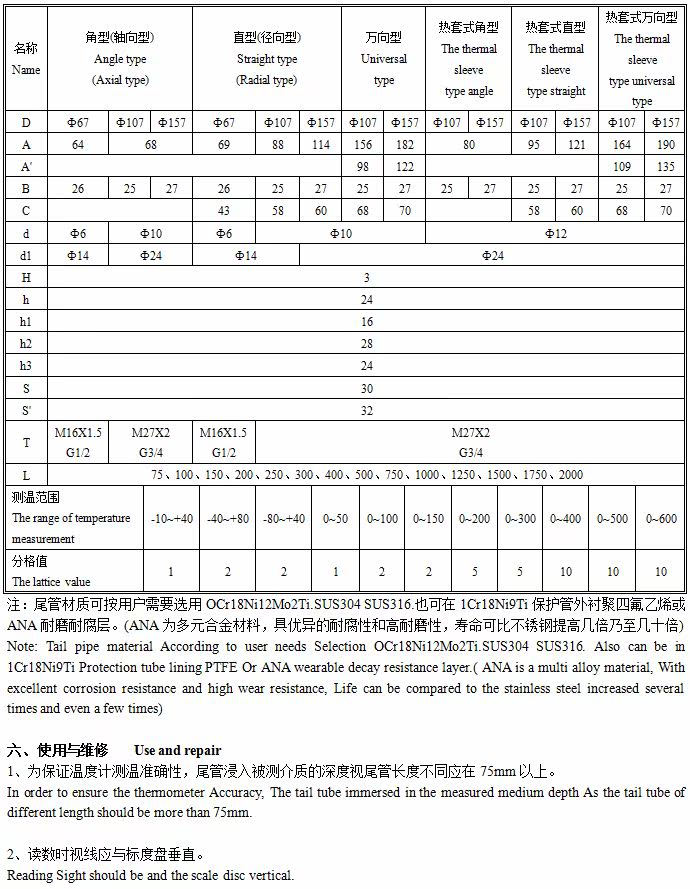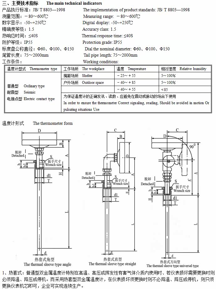 Наша компания произведенаWSSСерия двойных металлических термометров используется в защитной трубке, узловой головке, болте с замком и т. Д.1cr18ni9ti Материал, корпус обрабатывается растяжением алюминиевой пластины, поверхность обработки резки режущей поверхности -это черное электро -катание.