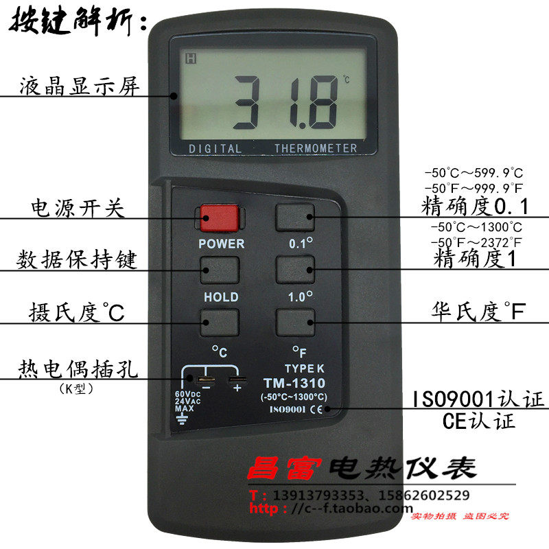 Высокий рецидив TM1310 Термометр контактный тип промышленной поверхности плесени Цифровой температурная таблица высокая температура термопары