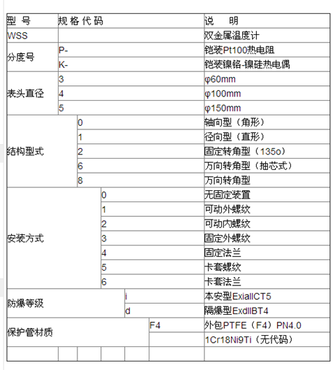 Пример выбора: (1) WSSP-413D: PT100 Удаленный проход, диаметр головки заголовкаΦ100 мм, радиальная структура, установка потока фиксации, взрыв -barrier exdiibt4;
