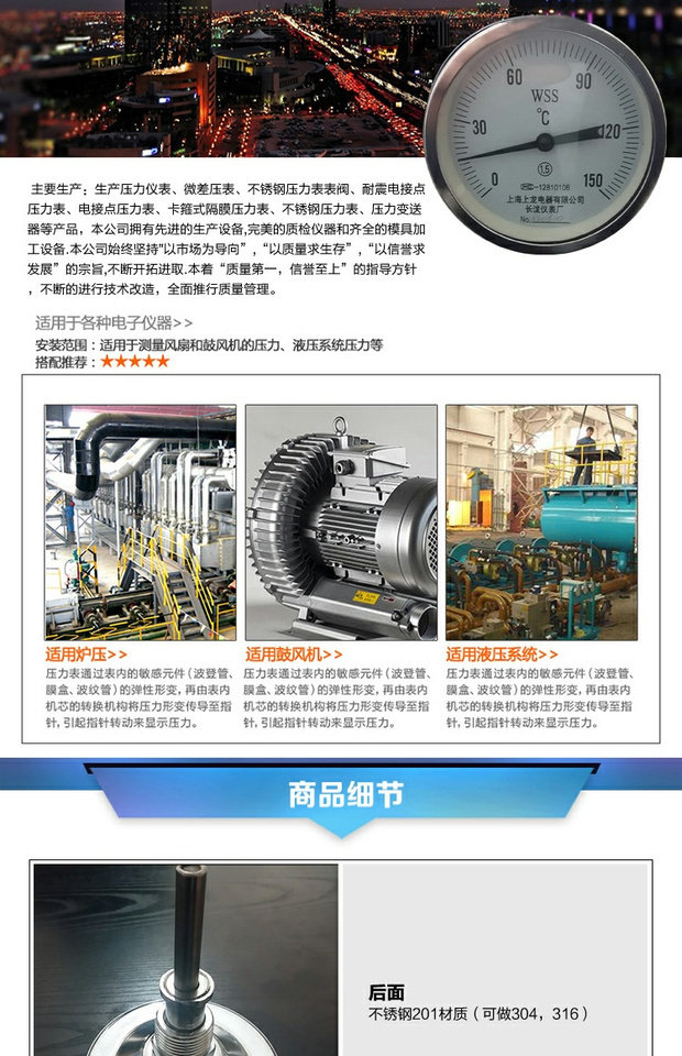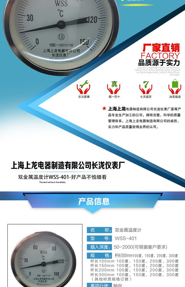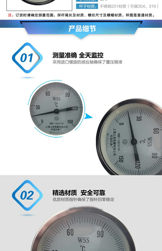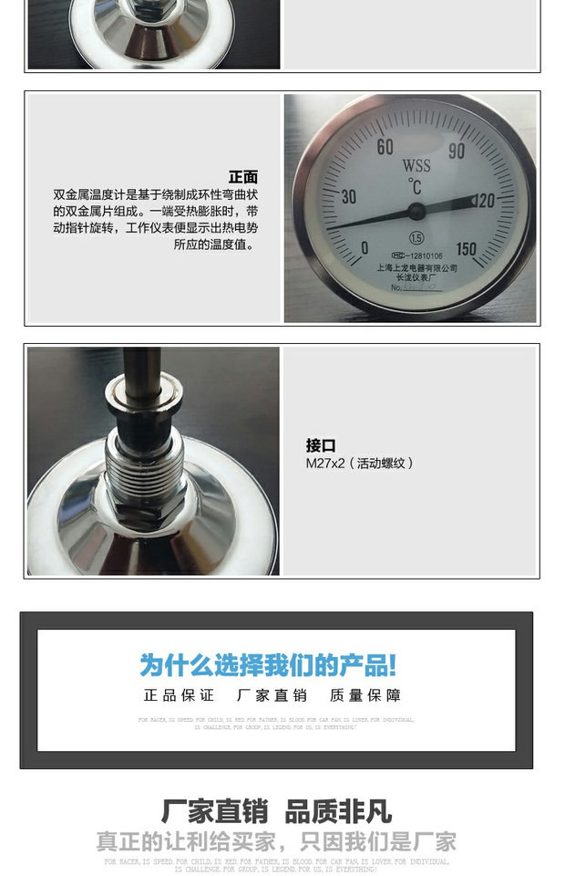 Термометр с двойным металлом WSS-401 из нержавеющей стали, направляющие стихи, котельные трубы Выпечка над промышленными часами
