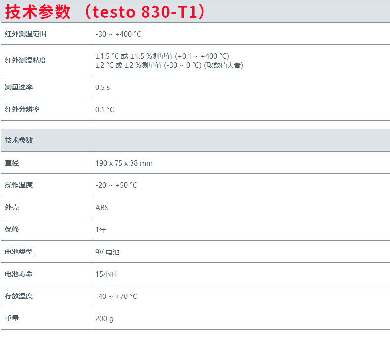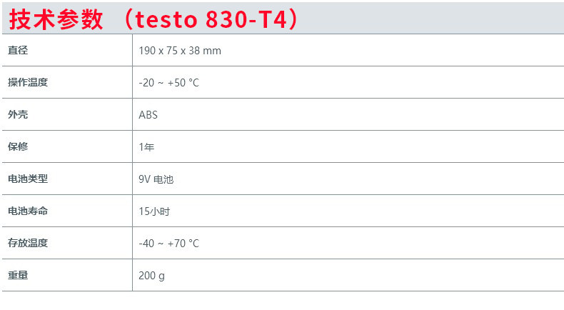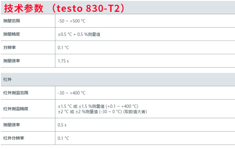 | Цвет: | Testo830-t1 (одиночный лазер), Testo830-t2 (двойной лазер), Testo830-t4 (двойной лазер) |