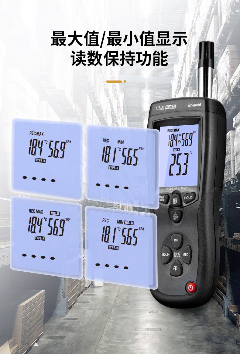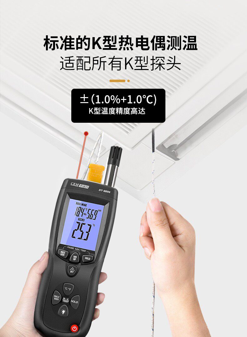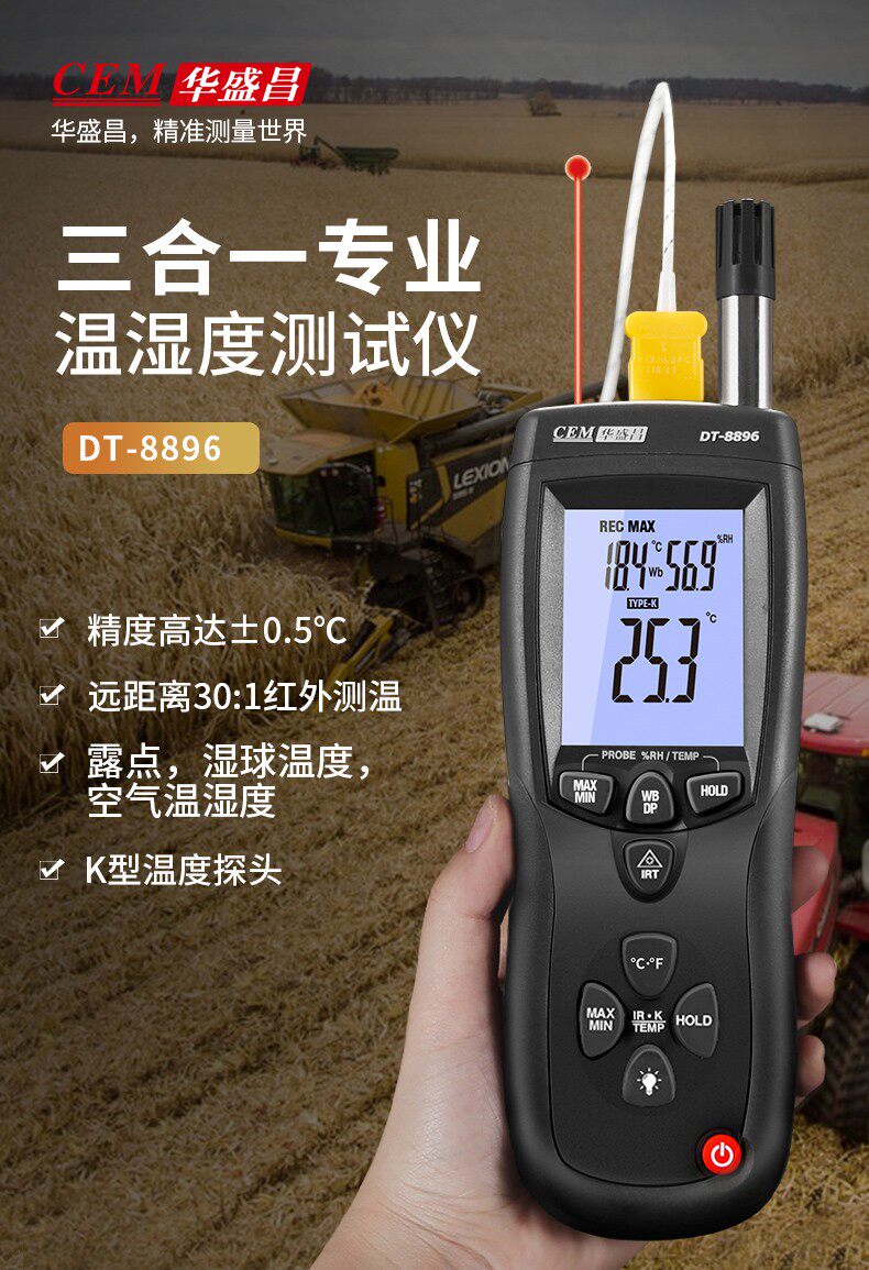 CEM Huashengchang DT-8896 Термопара термопары термопары Термометр Трех-в одном Профессиональная температура и влажность Инфракрасная точка росы.