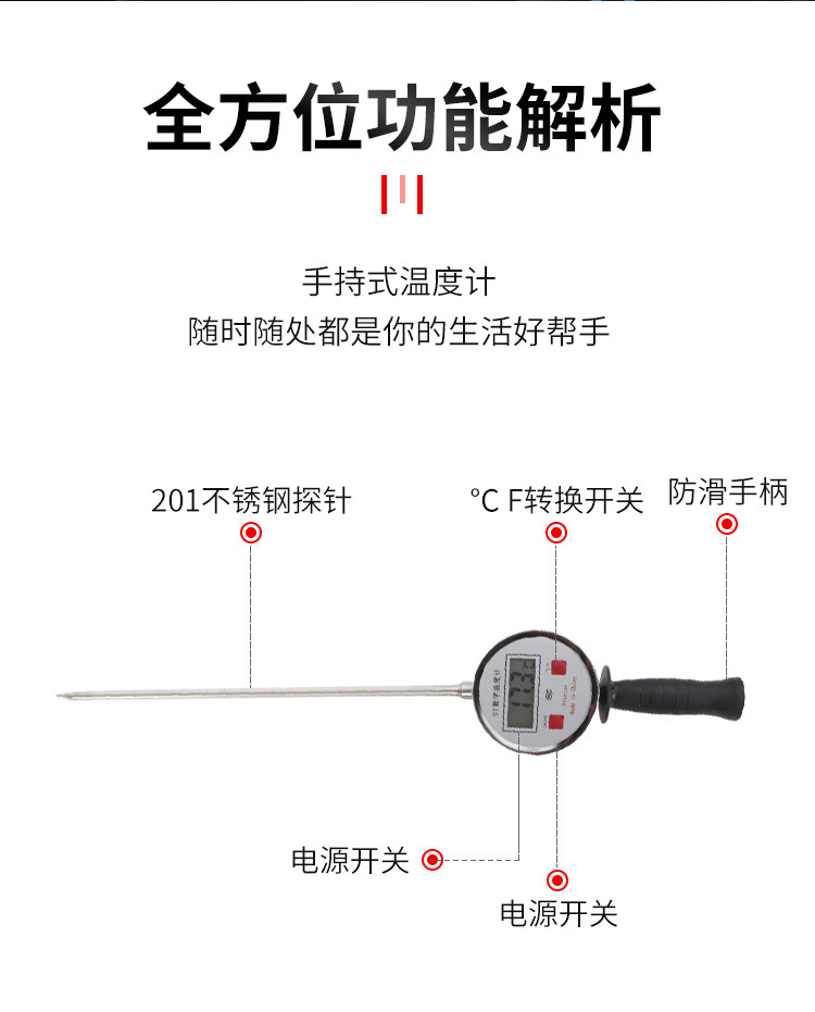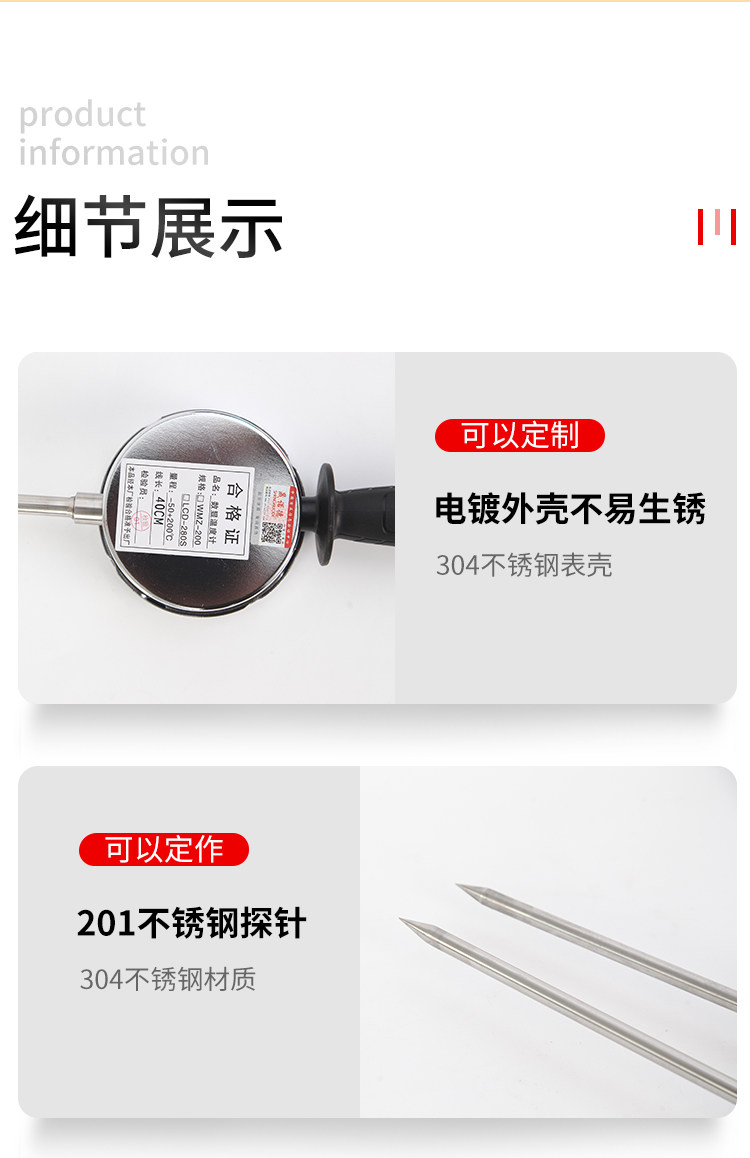 Длинный портативный натуральный металлический термометр, измерение температуры