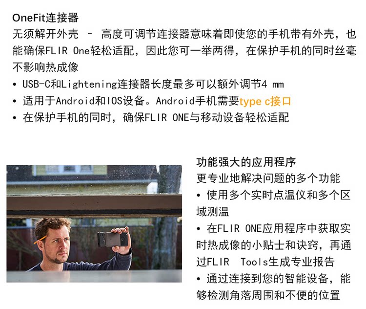 Flir One Flir One Pro за пределами мобильного телефона, чтобы подключить инфракрасное тепловое изображение.