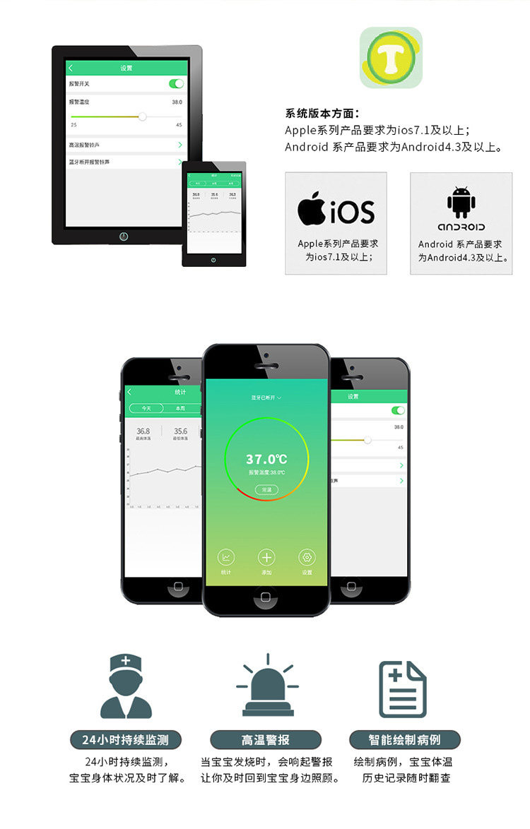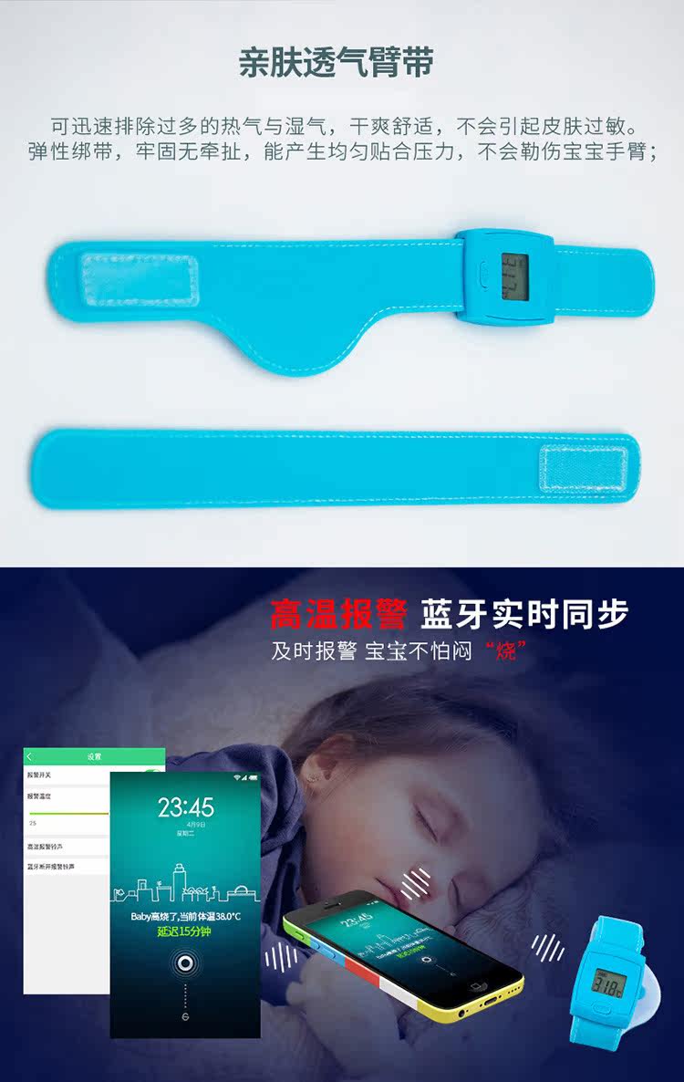 Браслет, автоматическая детская сигнализация для младенца для пожилых людей для домашнего использования, измерение температуры