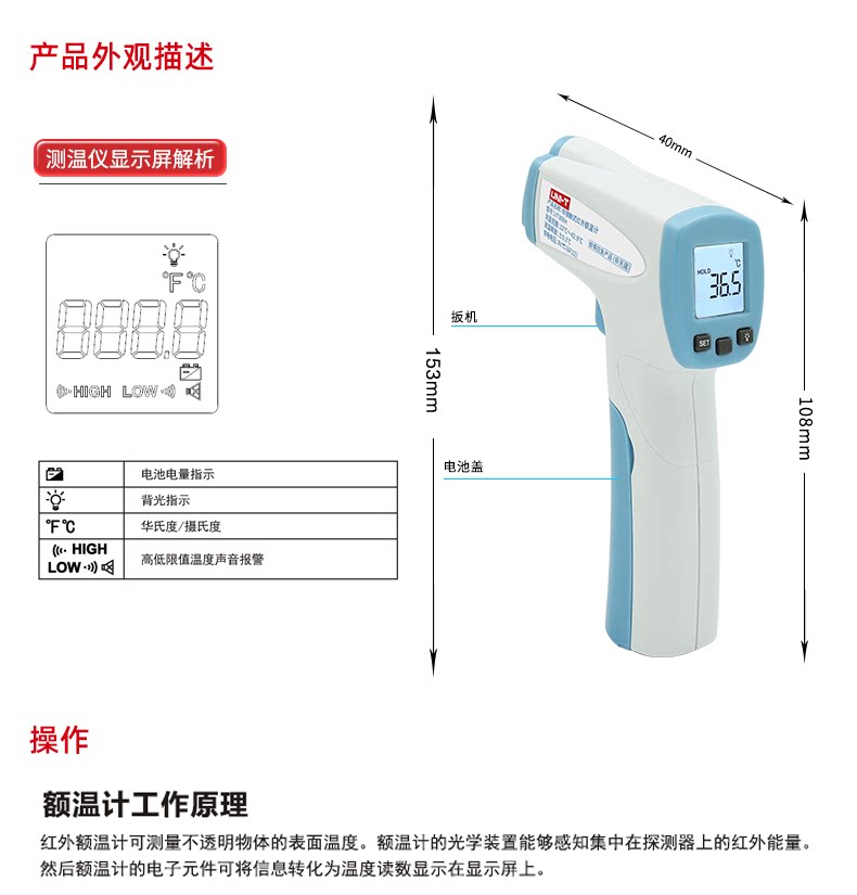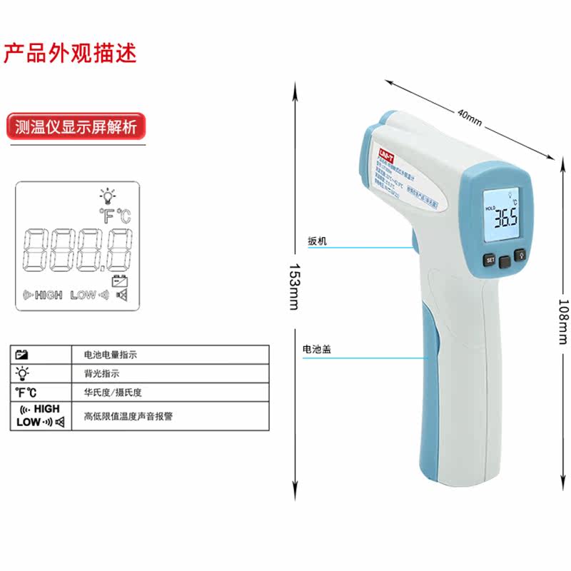 UT300H Инфракрасный термометр с высоким уровнем термометра не -контактный термометр.