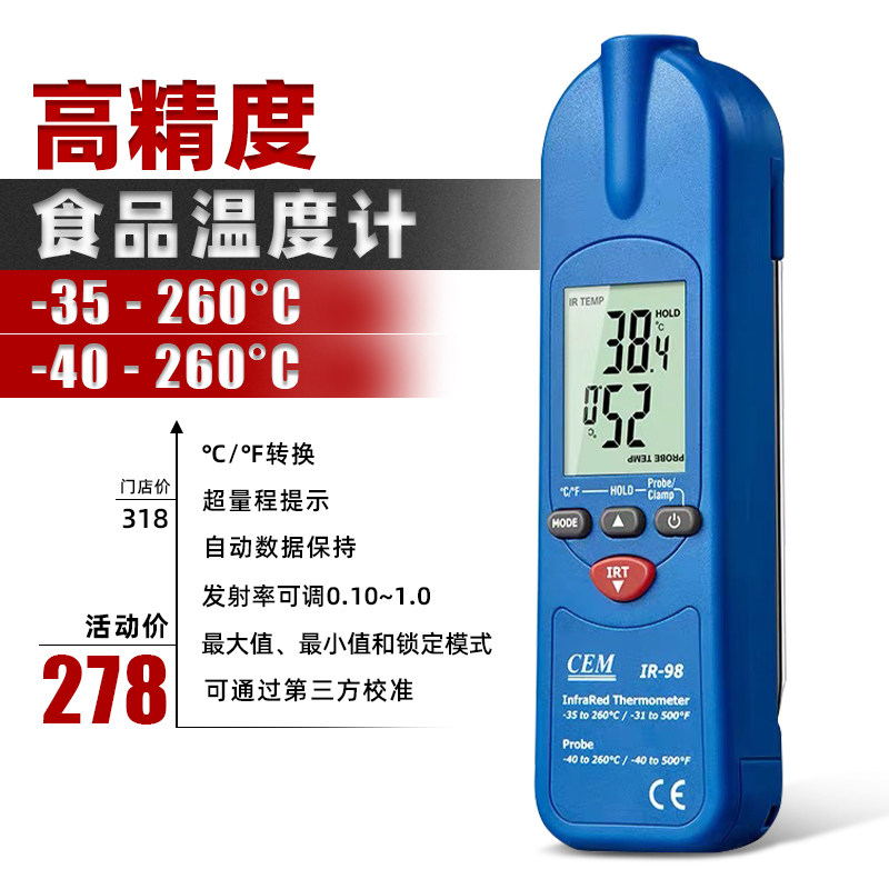 Промышленный инфракрасный термометр с высоким уровнем назначения портативного домашнего продовольственного зонда вставка термометр Huashengchang IR98