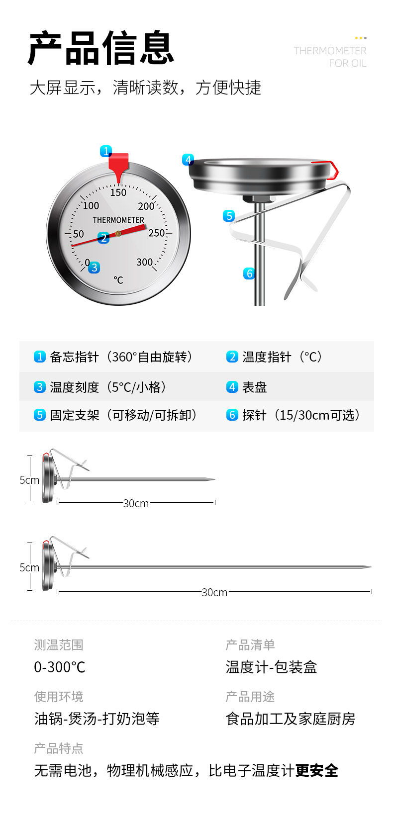 | Цвет: | Водный термометр 12 см зонд (проверка -10-100 ° C), Термометр для жарки 15 см зонд (тест 0-300 ° C), Термометр сверхси (высоко температурное, устойчивое к измеренному стеклом+тест 50-280 ° C) |