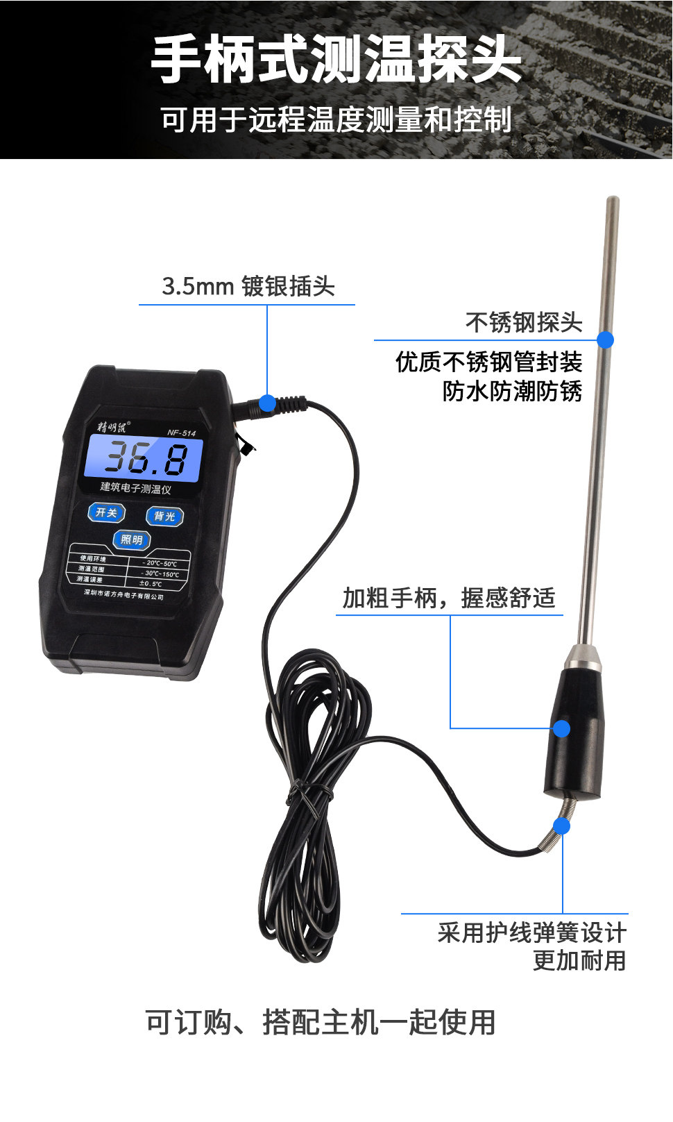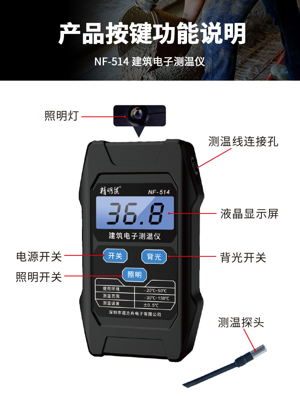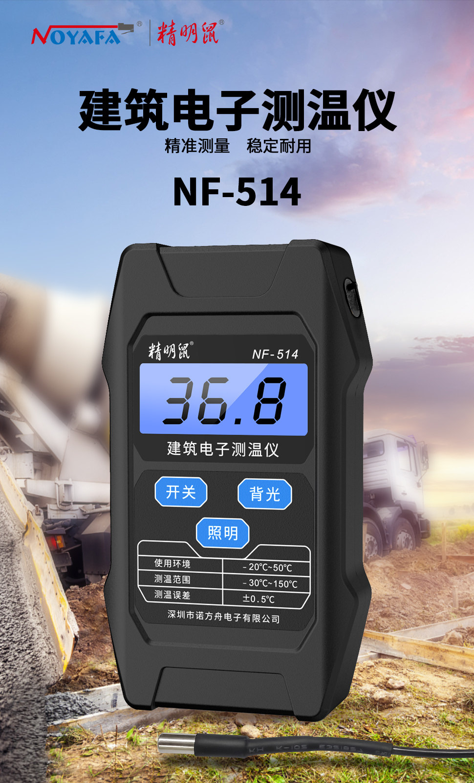 Смарт-крысы NF-514 Электронный термометр Термометр Термометр Гибридный тестирование цемента Термометр заканчивания