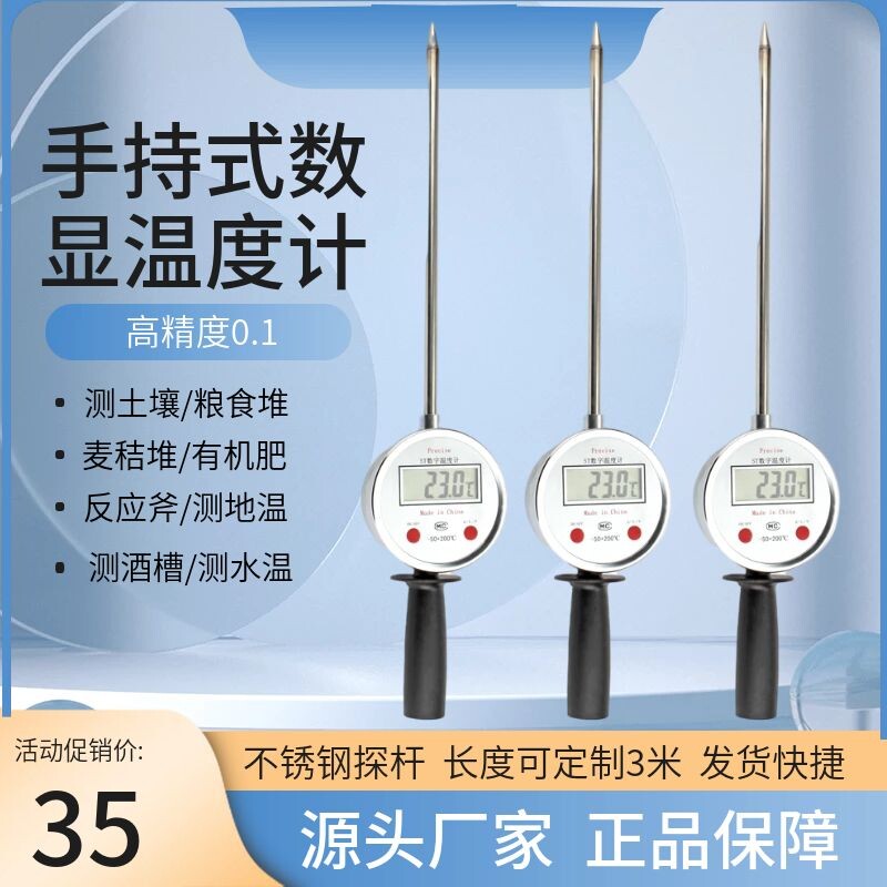 Портативный длинный электронный натуральный металлический термометр из нержавеющей стали, измерение температуры