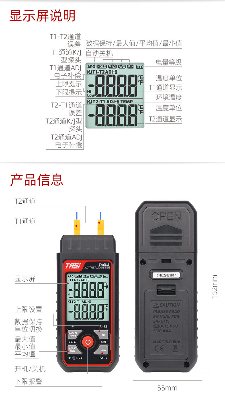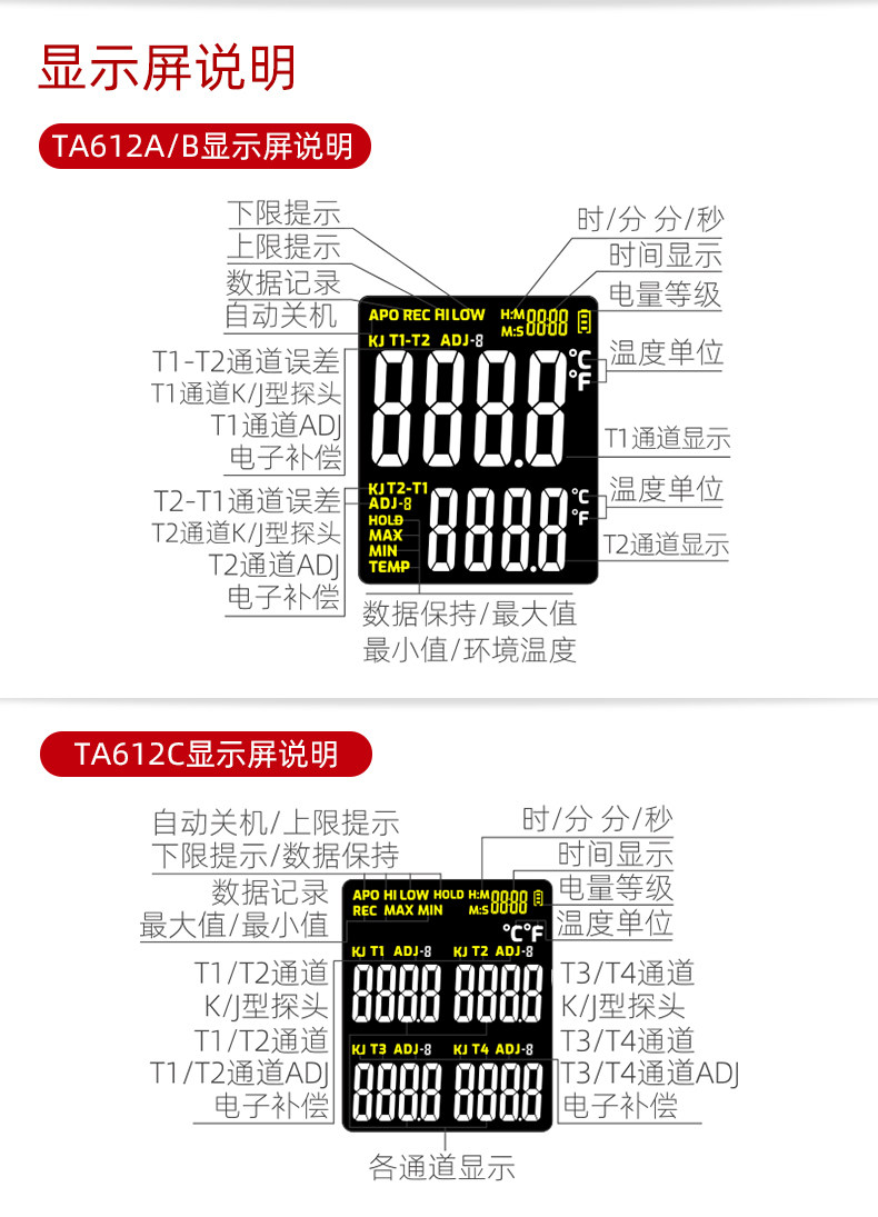 Tians K -тип j -тип термопары измеритель промышленного промышленного высокого контактного контакта Термометр TA612C