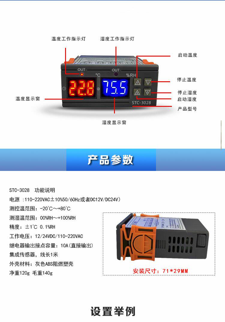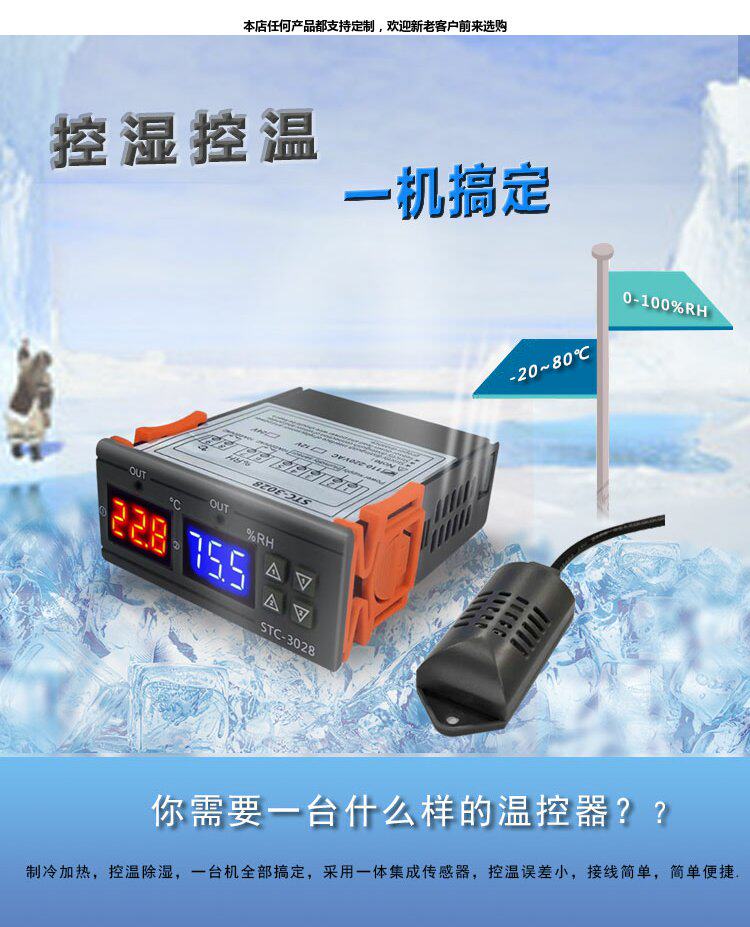STC-3028 Интеллектуальное число, показывающее температуру и контроллер влажности и контроль влажности.