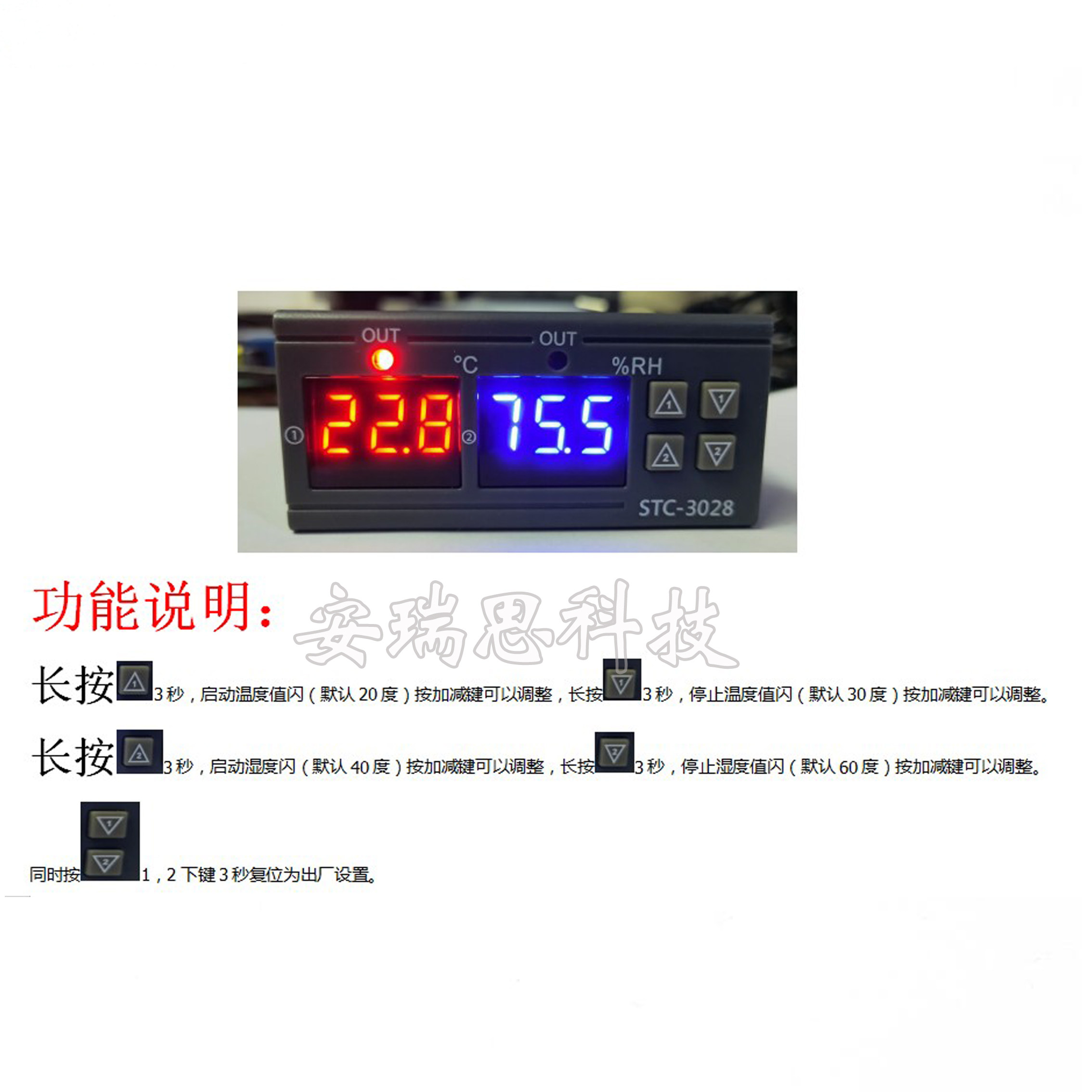 STC-3028 Интеллектуальное число, показывающее температуру и контроллер влажности и контроль влажности.