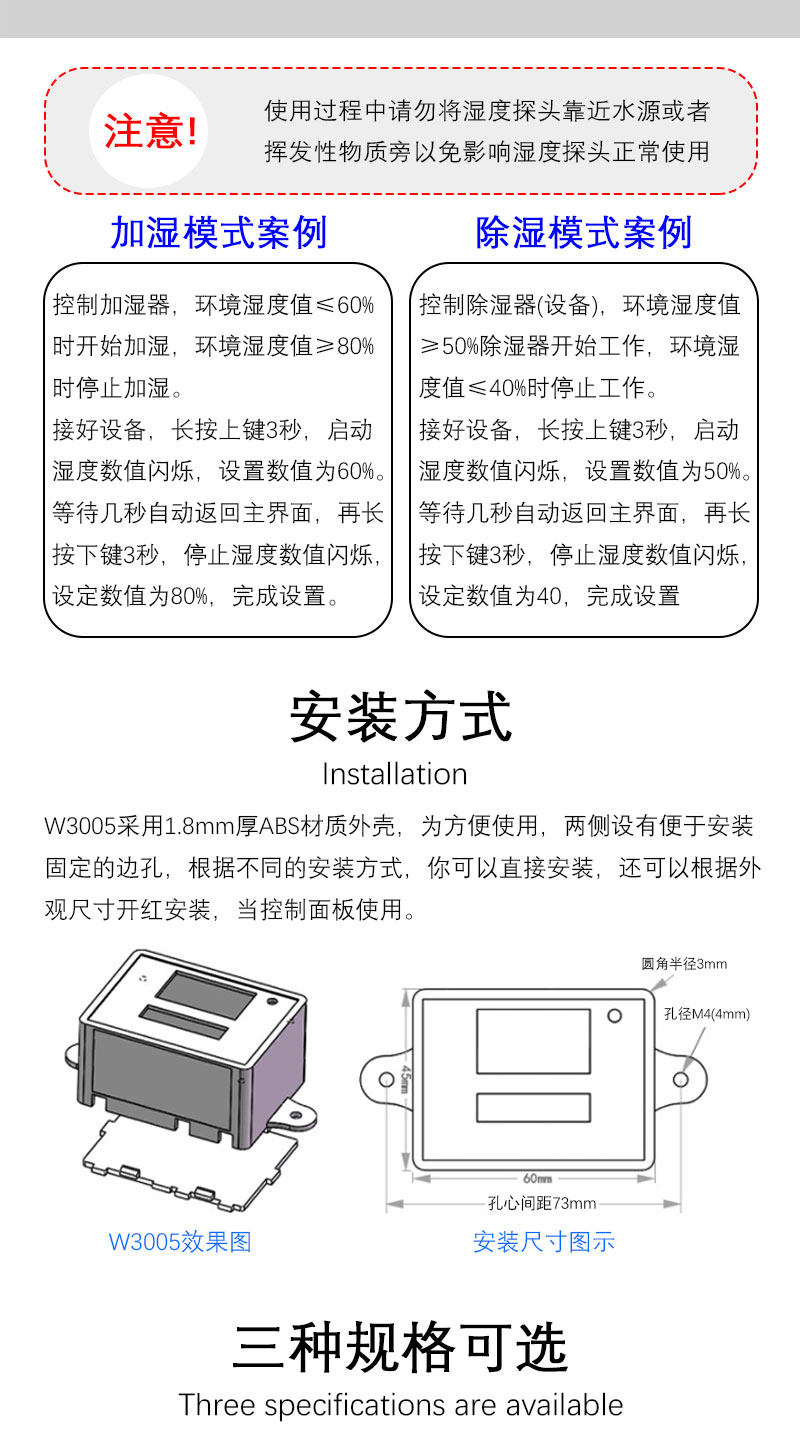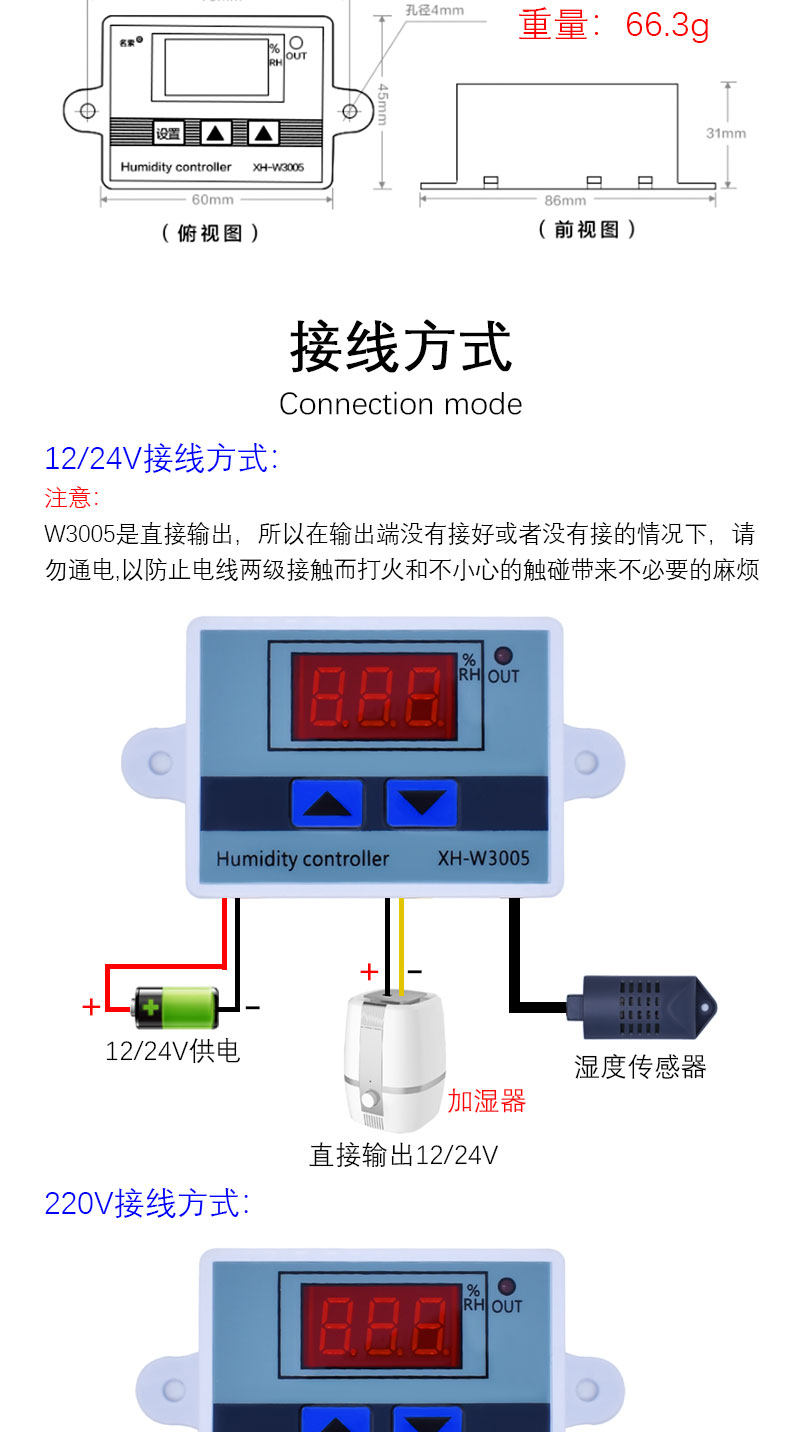XH-W3005 Цифровой контроллер управляет влажностью влажности, осушителя и управления влажностью интеллектуальной контроль влажности.