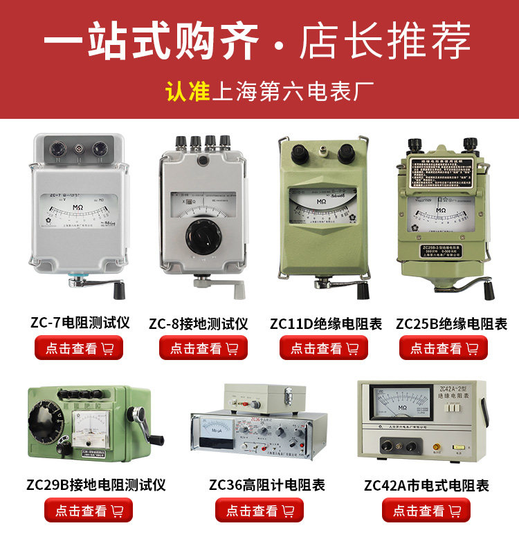 Шанхайский шестая электрическая настройка фабрика MIG ZC25B-3M Europe Table ZC11D-10 Тестер сопротивления изоляции 145 Shake Watch