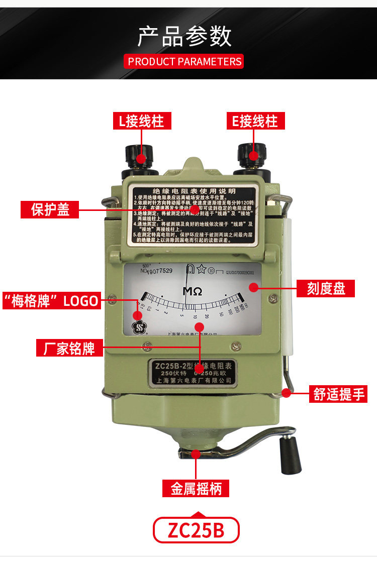 | Цвет: | ZC25B-1 (100 В/100 МОм), ZC25B-2 (250 В/250 МОм), ZC25B-3 (500 В/500 МОм), ZC25B-4 (1000 В/1000 МОм), ZC11D-3 (500 В/0-2000 мм), ZC11D-4 (1000 В/0-5000 мм), ZC11D-5 (2500 В/0-10000 мм), ZC11D-10 (2500 В/0-2500 мм) |