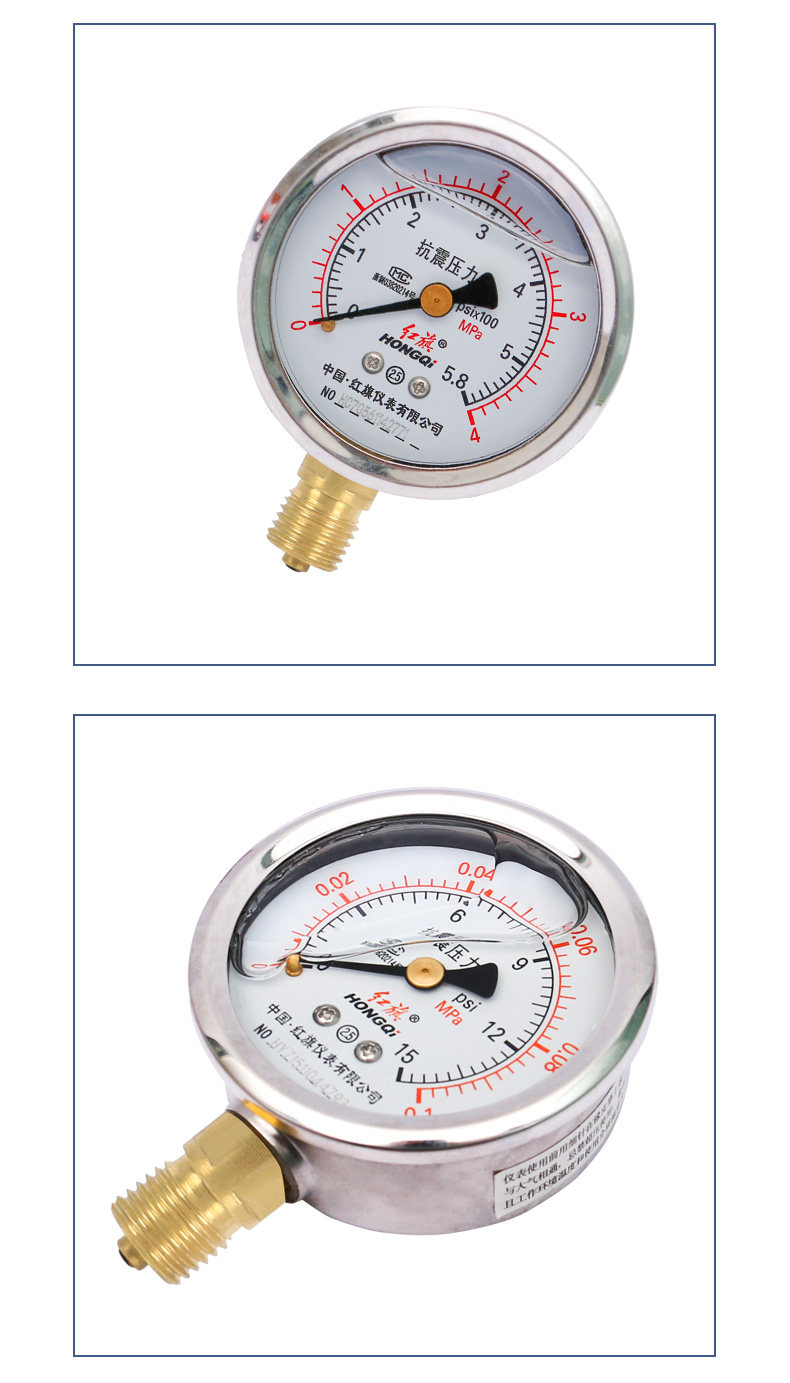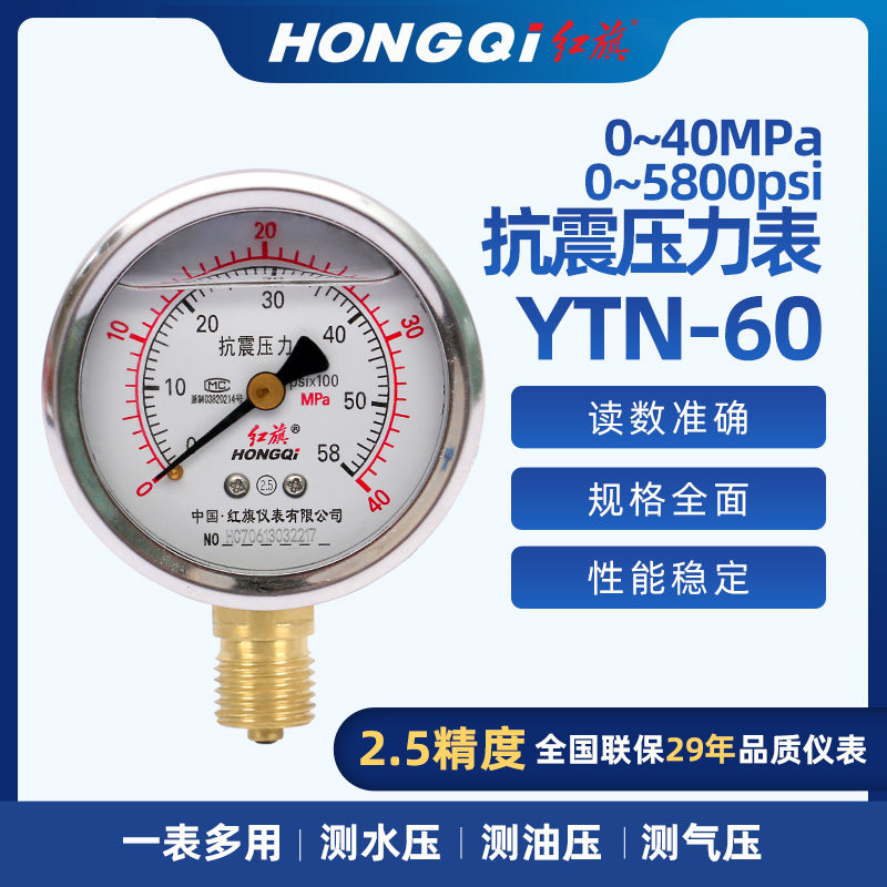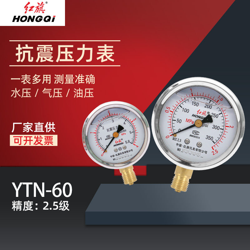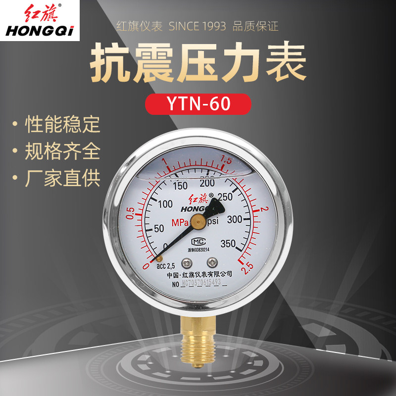 Красное сейсмическое давление сейсмическое давление таблетка антисейсмического давления в таблице YN-60YTN-60 маномер датчика масло гидравлического давления