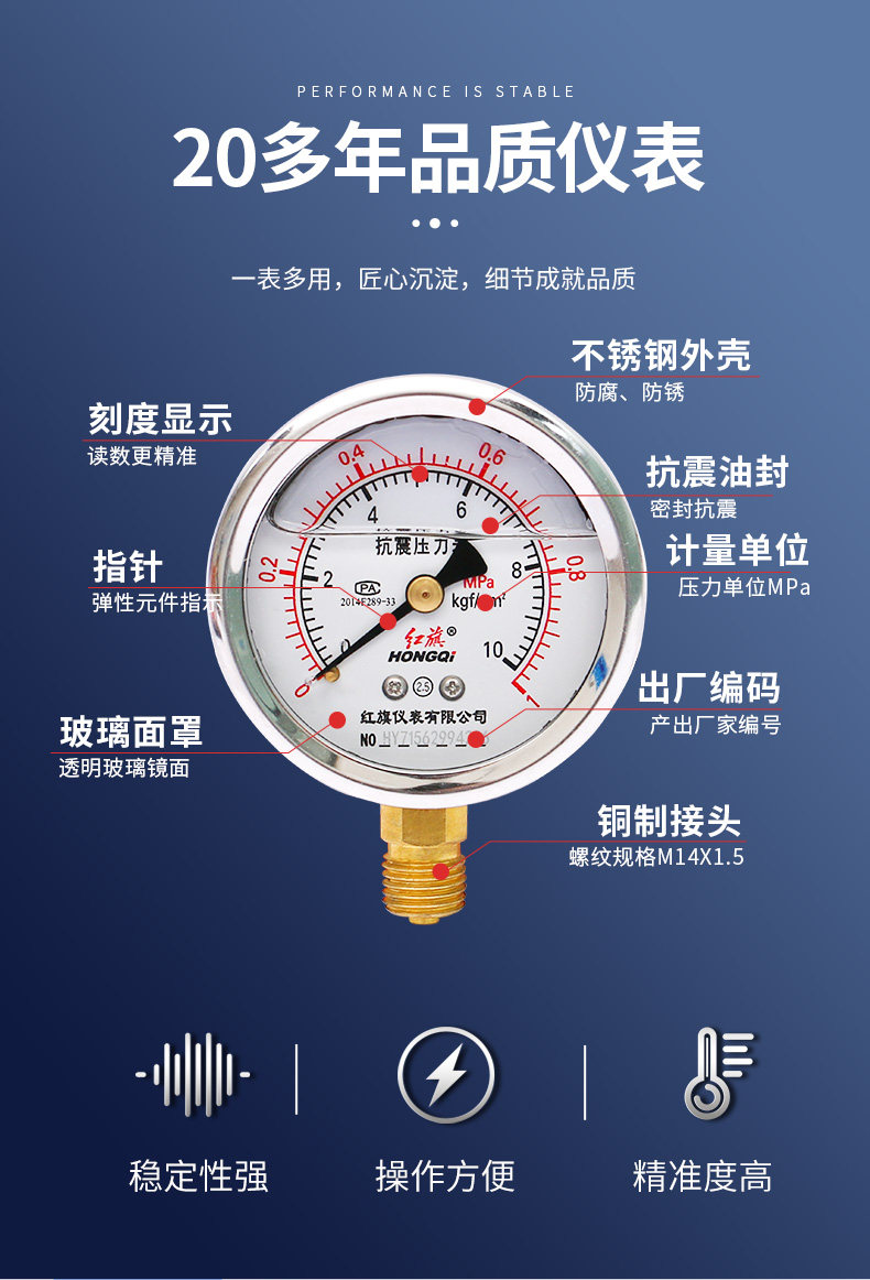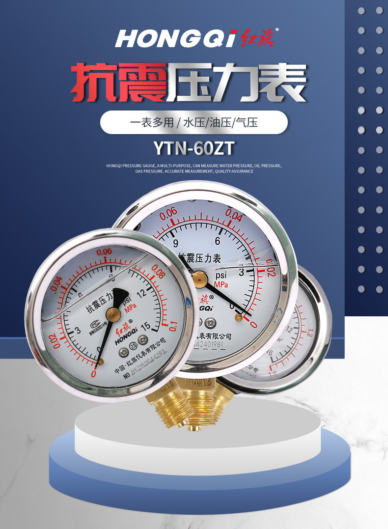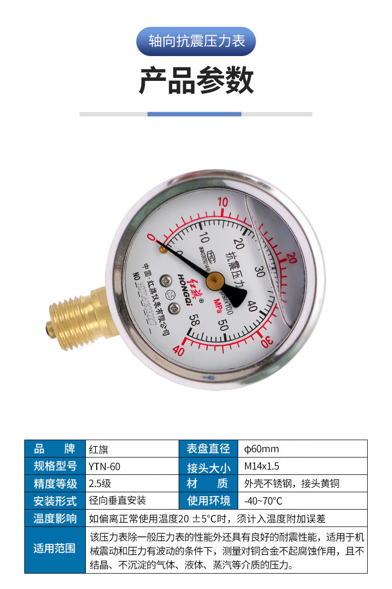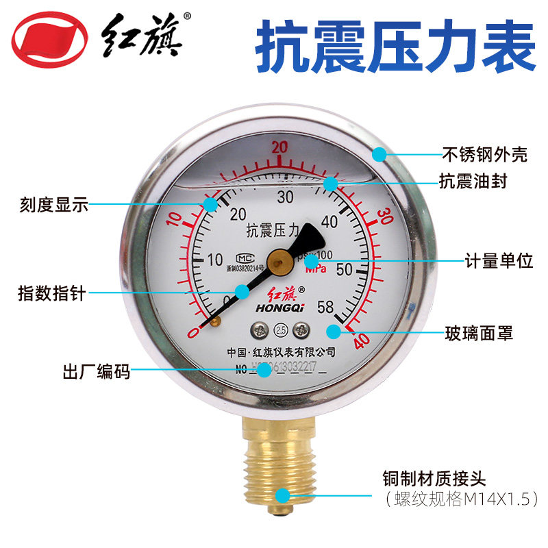 Красное сейсмическое давление сейсмическое давление таблетка антисейсмического давления в таблице YN-60YTN-60 маномер датчика масло гидравлического давления