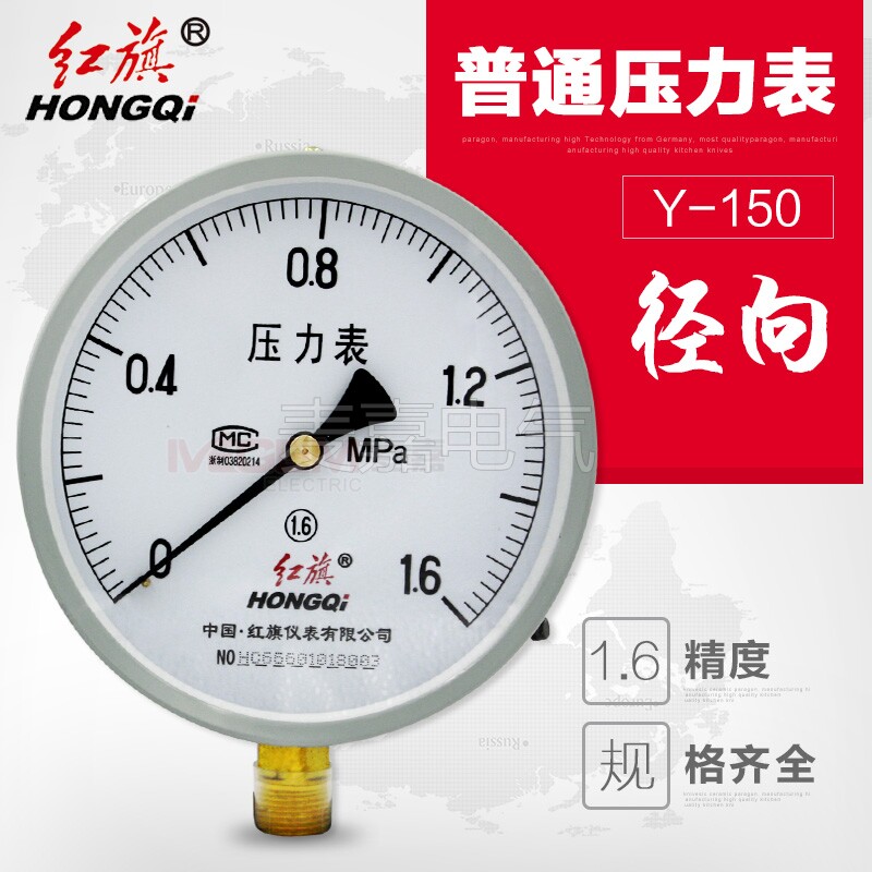 红旗 Обычный датчик давления Y-150 Радиальное давление на манометре