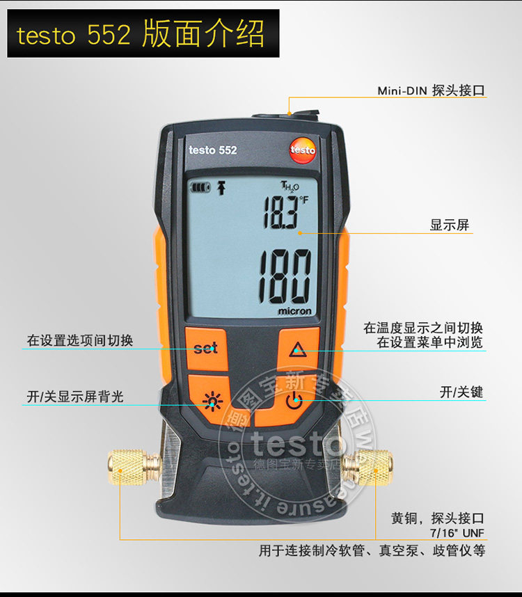 Германия DETU Testo552 Smart Wireless Bluetooth с высоким содержанием цифровой вакуумной вакуумной вакуумной тестирование