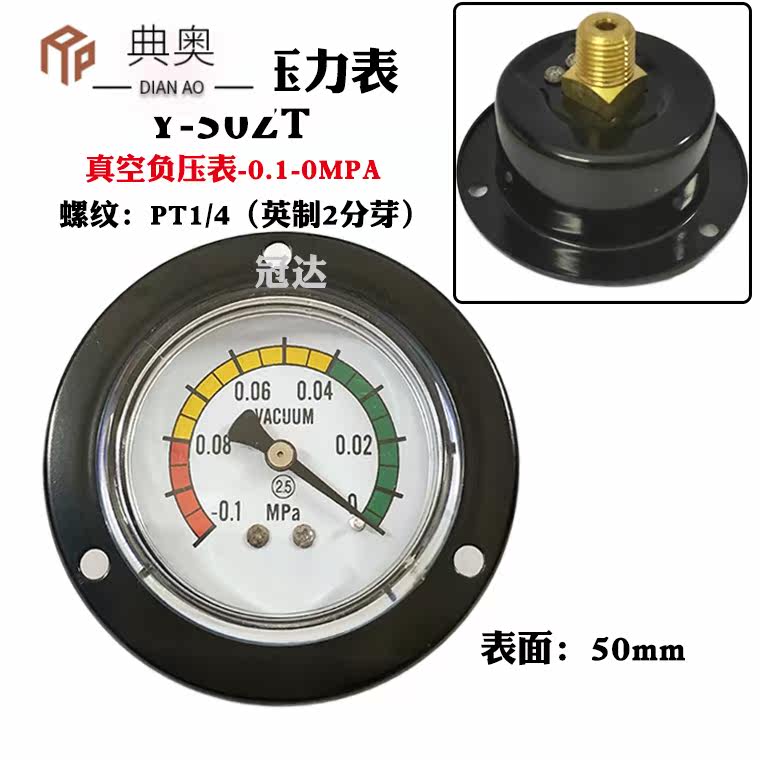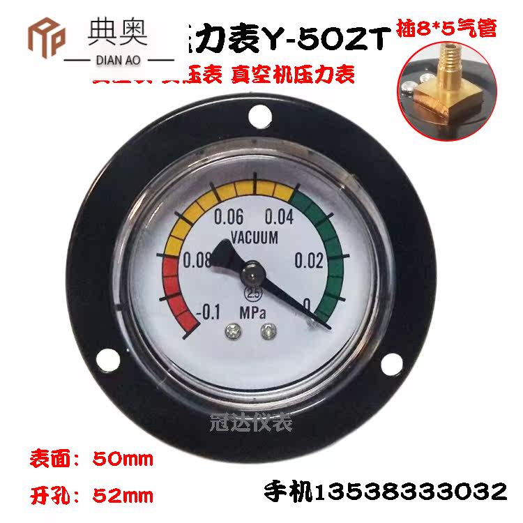 Y50ZT Осевой давление на осевой давление вакуум с отрицательным отрицательным давлением вакуумный прибор-0.1-0mpa Интубация 6 мм