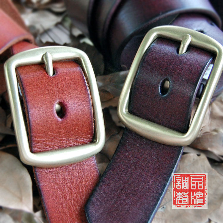 Глянцевый ремень подходит для мужчин и женщин ручной работы, ретро медные штаны для отдыха, DIY, из натуральной кожи