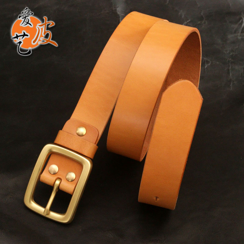 Мужской медный импортный ремень ручной работы, кожаные джинсы, из натуральной кожи