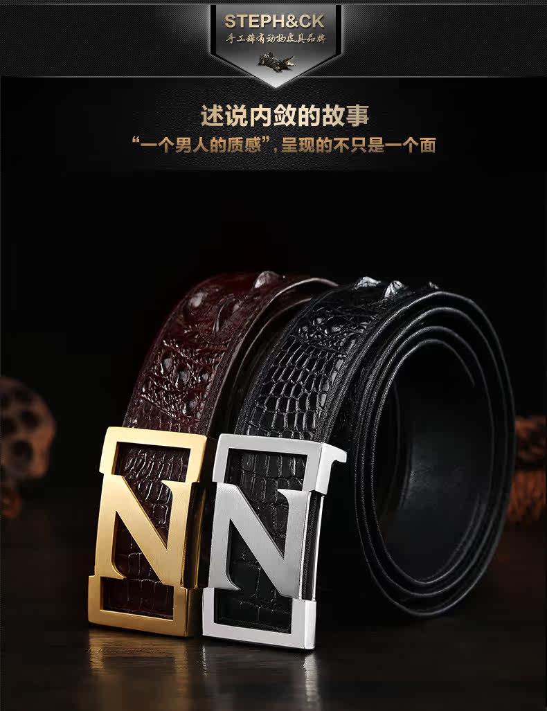 Ремень, штаны из нержавеющей стали, крокодил, из натуральной кожи, 3.8см