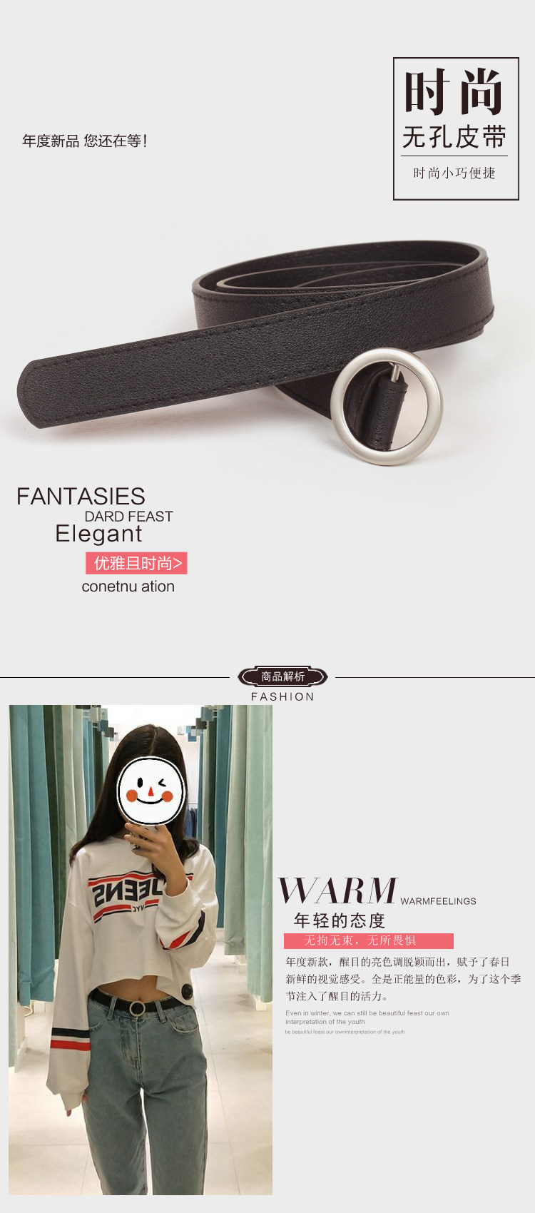 Черное кольцо, джинсы, универсальный ремень, штаны, простой и элегантный дизайн, в корейском стиле