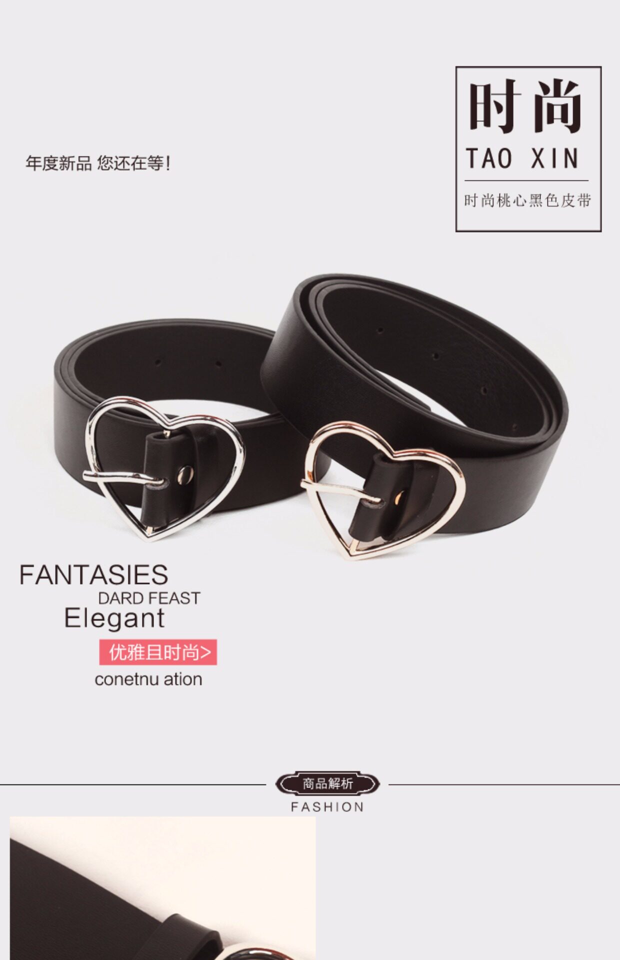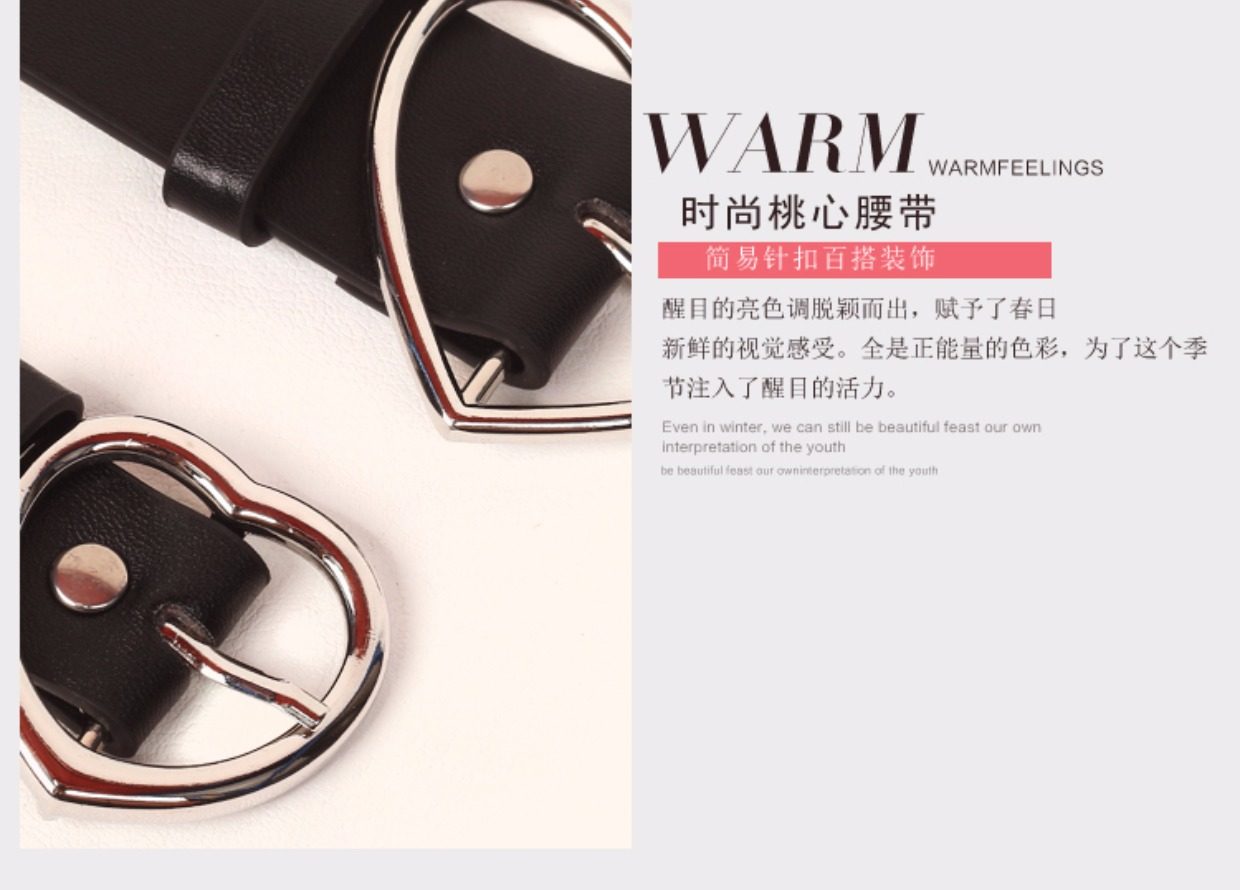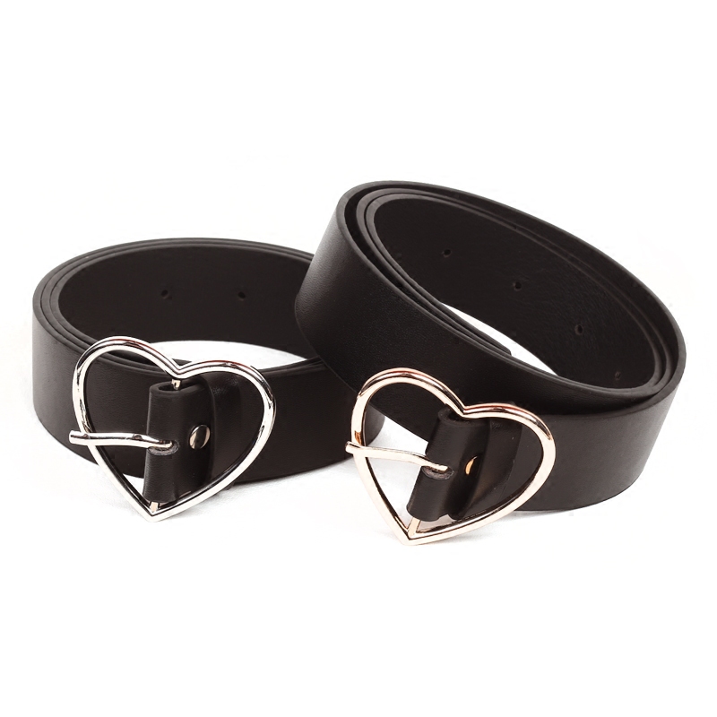 Черный милый ремень в форме сердца для школьников и студентов, универсальные штаны, простой и элегантный дизайн