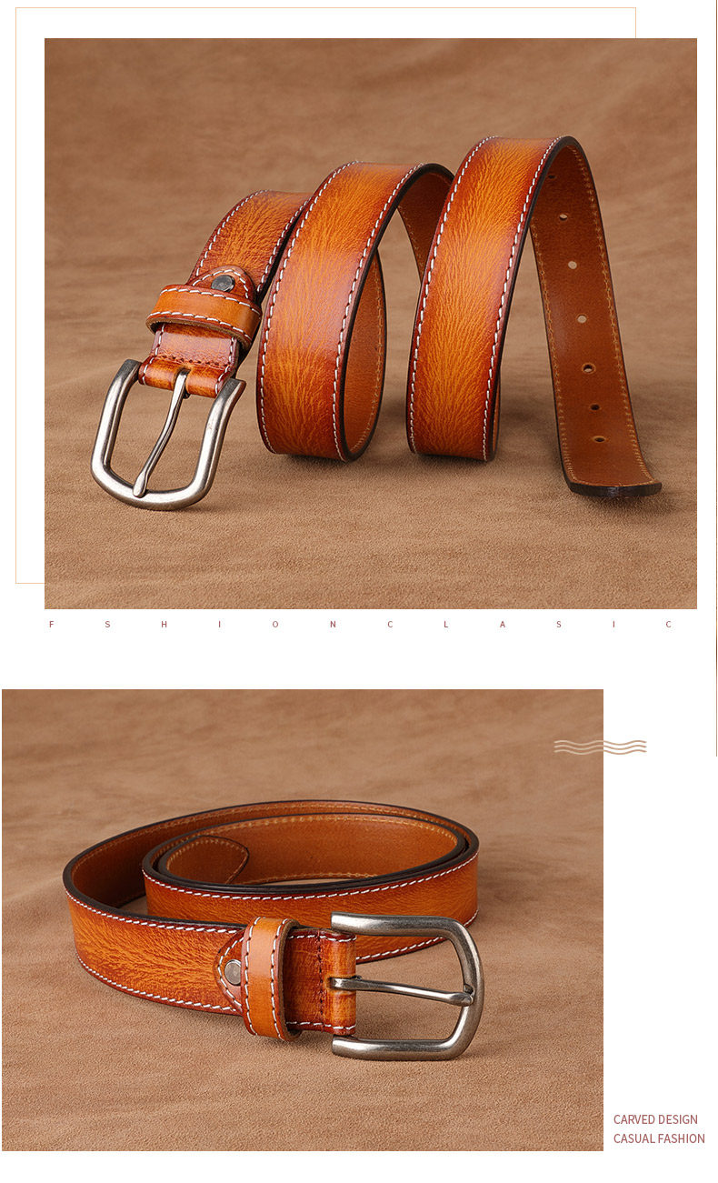 Античный коричневый ремень для мужчин подлинная кожаная пряжка для первого слоя чистого кожи для кожи для женщин Простая и универсальная корейская тенденция