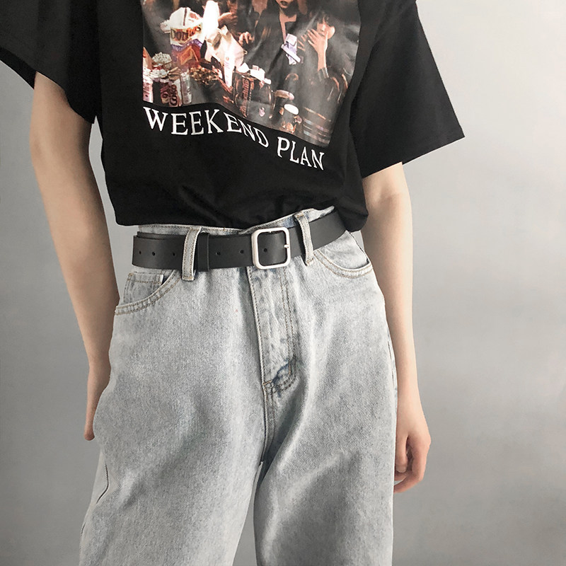 Универсальный ремень, брендовые джинсы, модные черные штаны для школьников, простой и элегантный дизайн