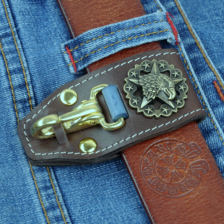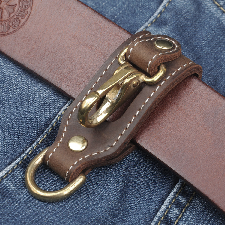 Ретро кожаный латунный брелок ручной работы, ремень, замок, ключница
