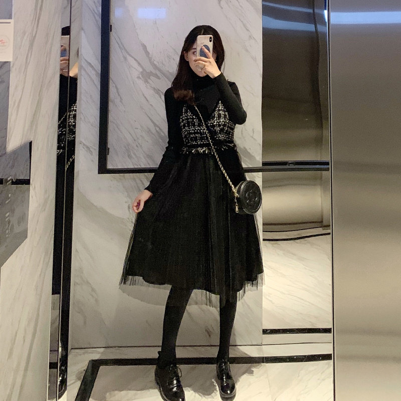 Демисезонное платье, комплект, платье-комбинация, из фатина, 2020