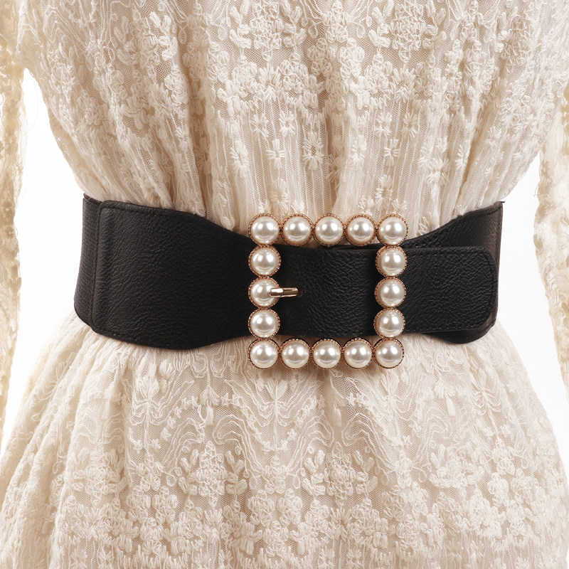 Милый эластичный ремень из жемчуга, платье, куртка, модный корсет, утягивающий пояс на талию