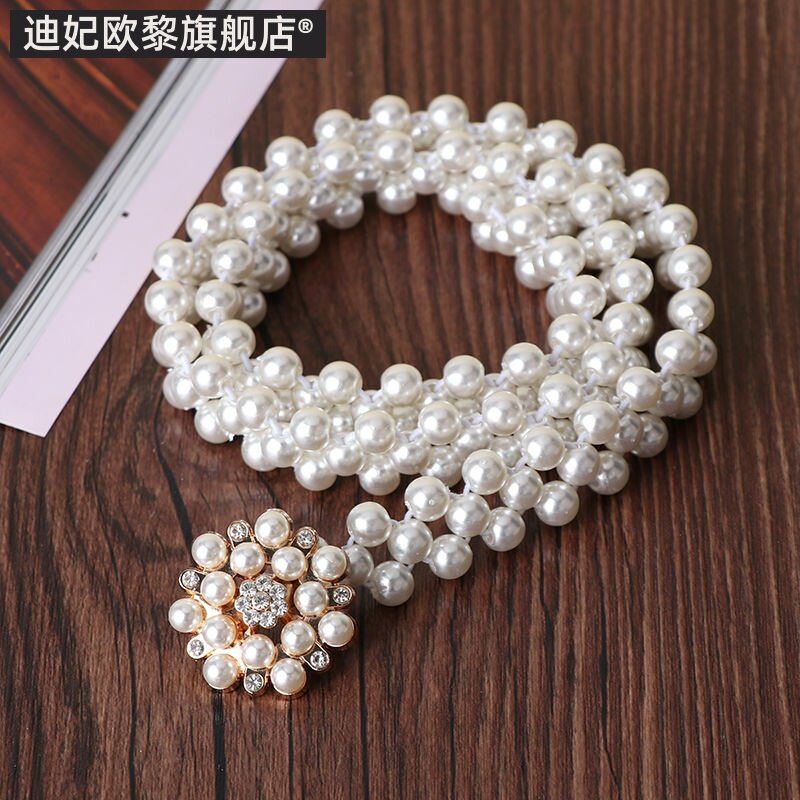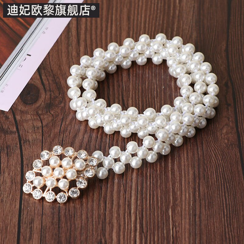 Цепочка из жемчуга, ремень, платье, эластичный универсальный утягивающий пояс на талию, модный аксессуар, в корейском стиле