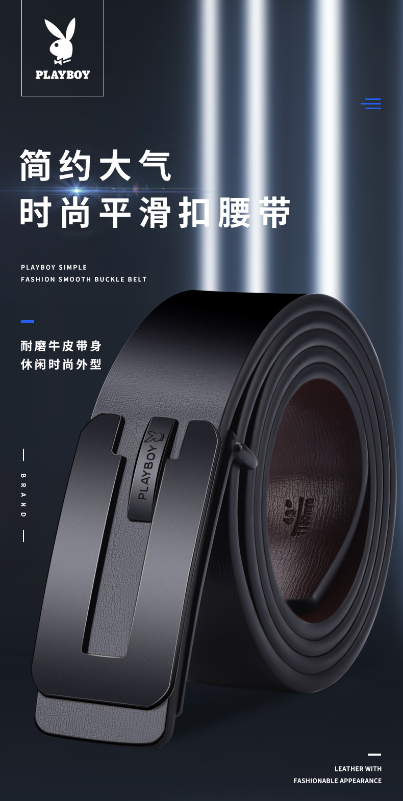 Playboy, ремень, кожаная световая панель, штаны для школьников для отдыха, из натуральной кожи, в корейском стиле