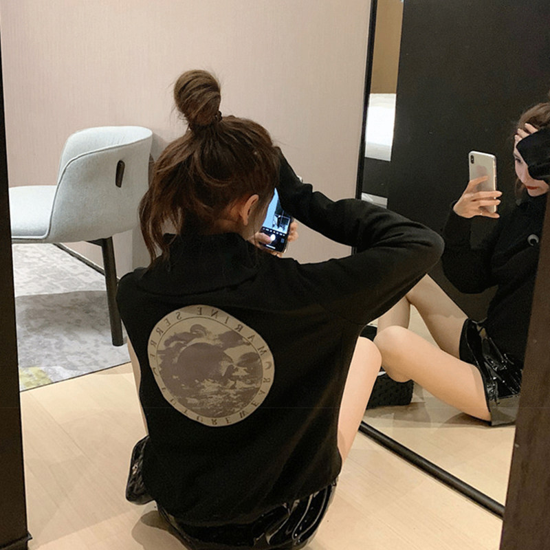 Демисезонная сексуальная элитная короткая утепленная толстовка с молнией, свободный крой, высокий воротник