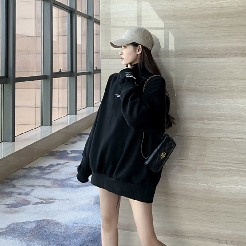 Черная толстовка, длинная зимняя утепленная куртка с капюшоном, свободный крой, средней длины