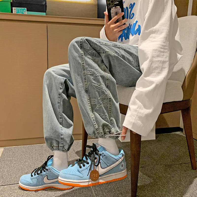 Весенние прямые свободные джинсы, трендовые штаны для отдыха, на шнурках, в корейском стиле
