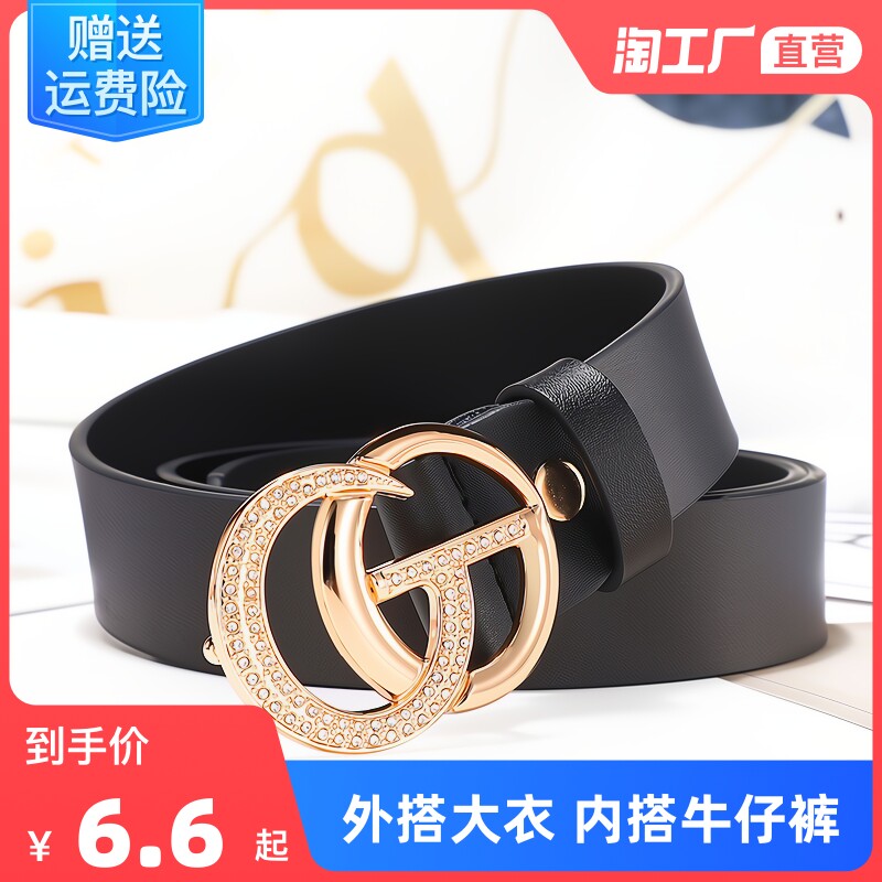 Ремень, универсальные джинсы для отдыха, брендовая пряжка, штаны, из натуральной кожи