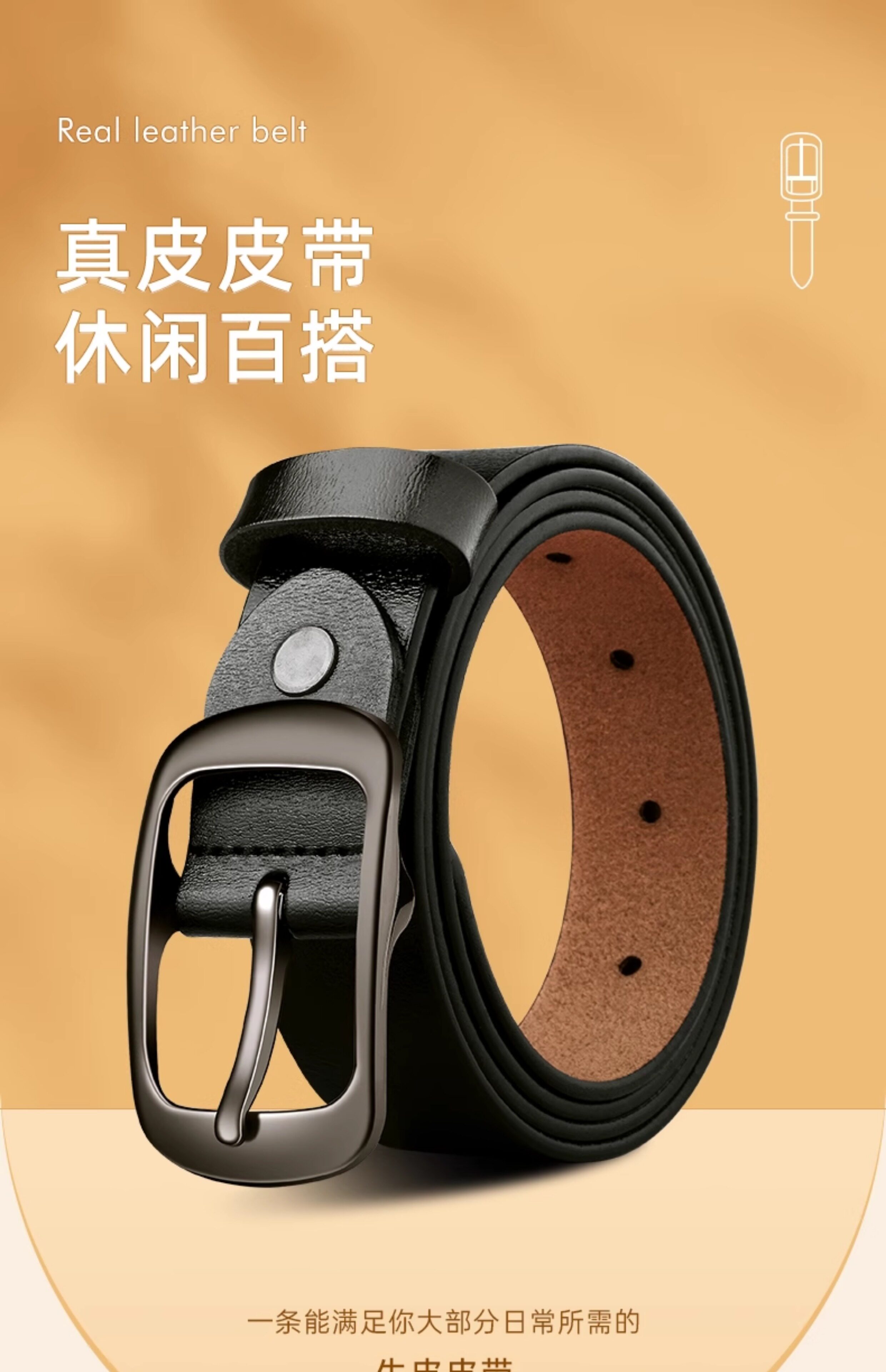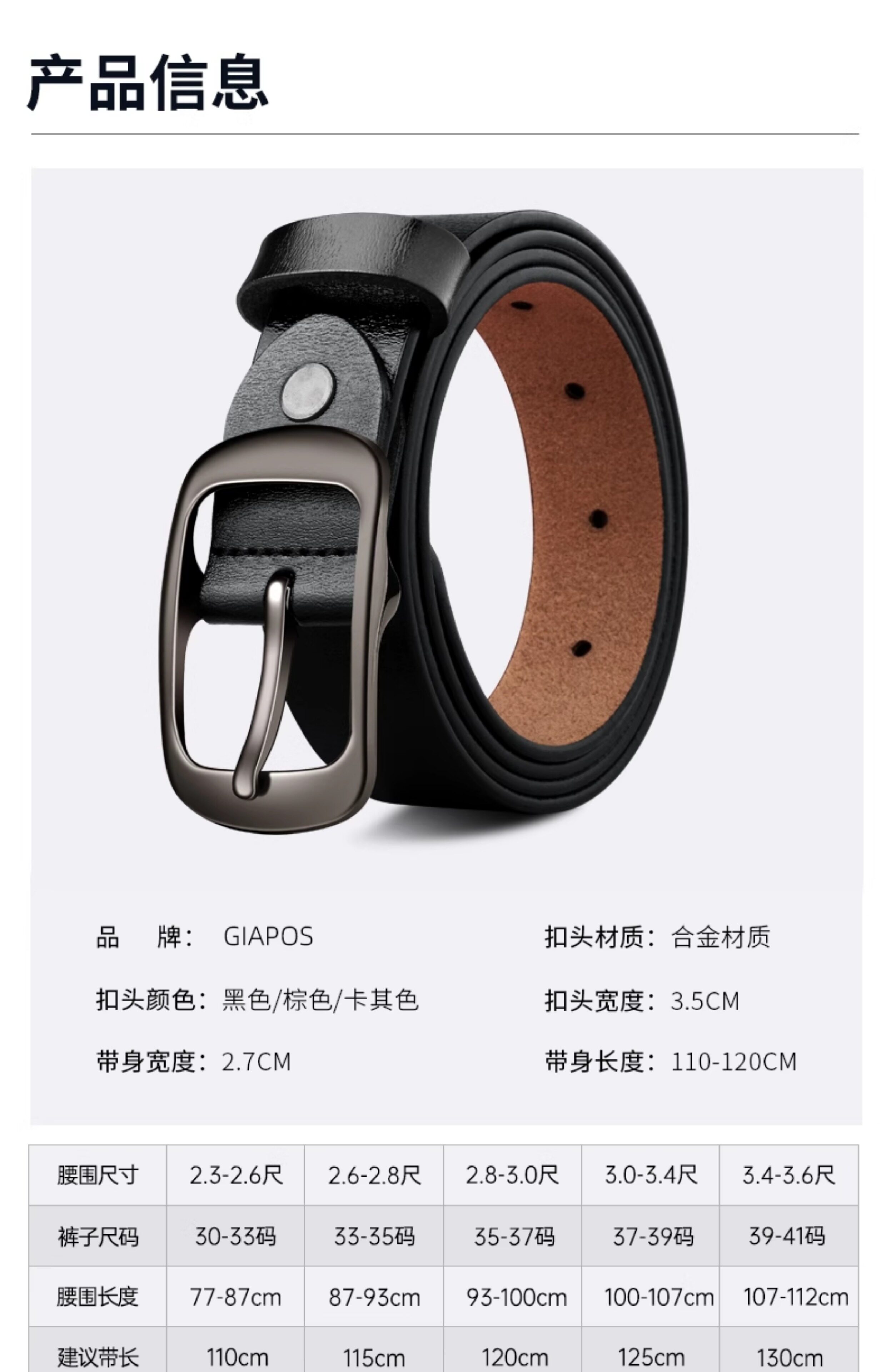 GIAPOS Ремень, кожаные универсальные штаны, черные джинсы, из натуральной кожи, простой и элегантный дизайн