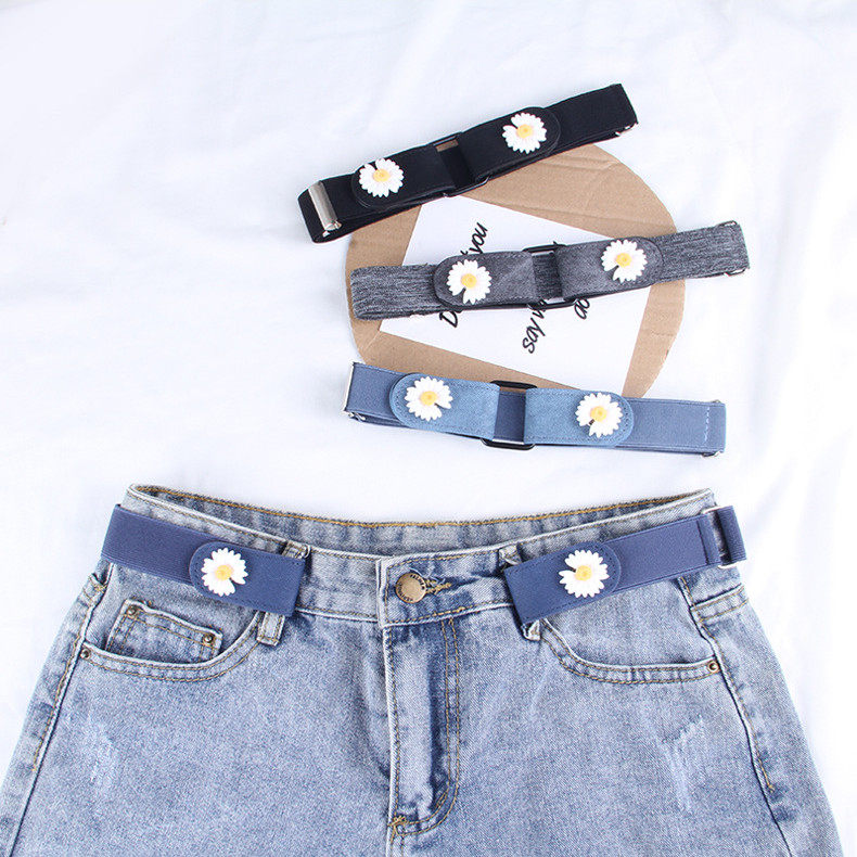 Эластичная невидимая пряжка, ремень, универсальные черные металлические джинсы, в цветочек