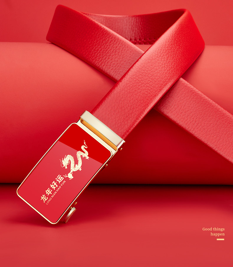 Новый год красной пояса талии, Новый год Dragon, благоприятный брачный жених, мужской кожаный бутик -брюки с красным поясом.